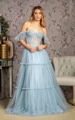 Get ready to show off your glamorous side in this beautiful creation by Abby Paris 94142. This fabulous dress features an asymmetrical neckline along with short puffed sleeves. The entire bodice is adorned with intricate sequin work and intended to hit at the thigh. The vent along the side gives a comfortable fit and addresses the fabulous crowd with zeal.