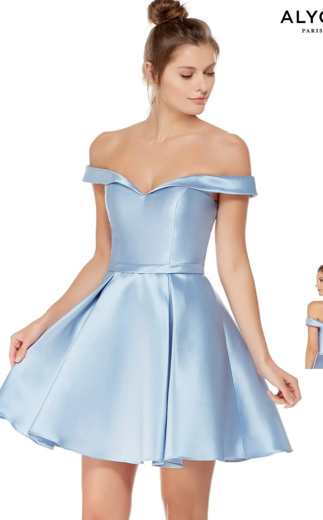 Look Dazzling in this Alyce 3766 by Alyce. This dress features A-Line, Blue, eoy2019, Holiday Dresses, Homecoming Dresses, Natural, No, Prom Dresses, Satin, Short Sleeve, Simply Chic, Unique Neckline
