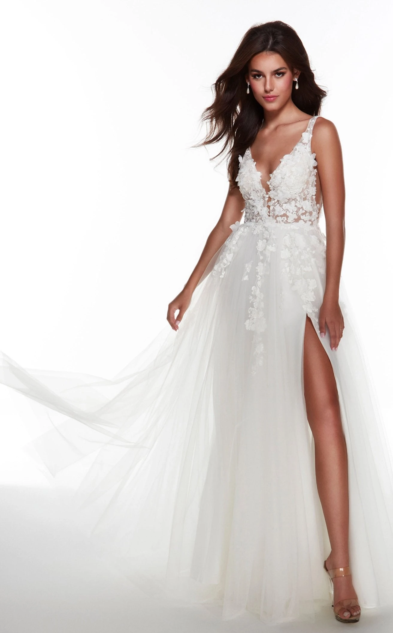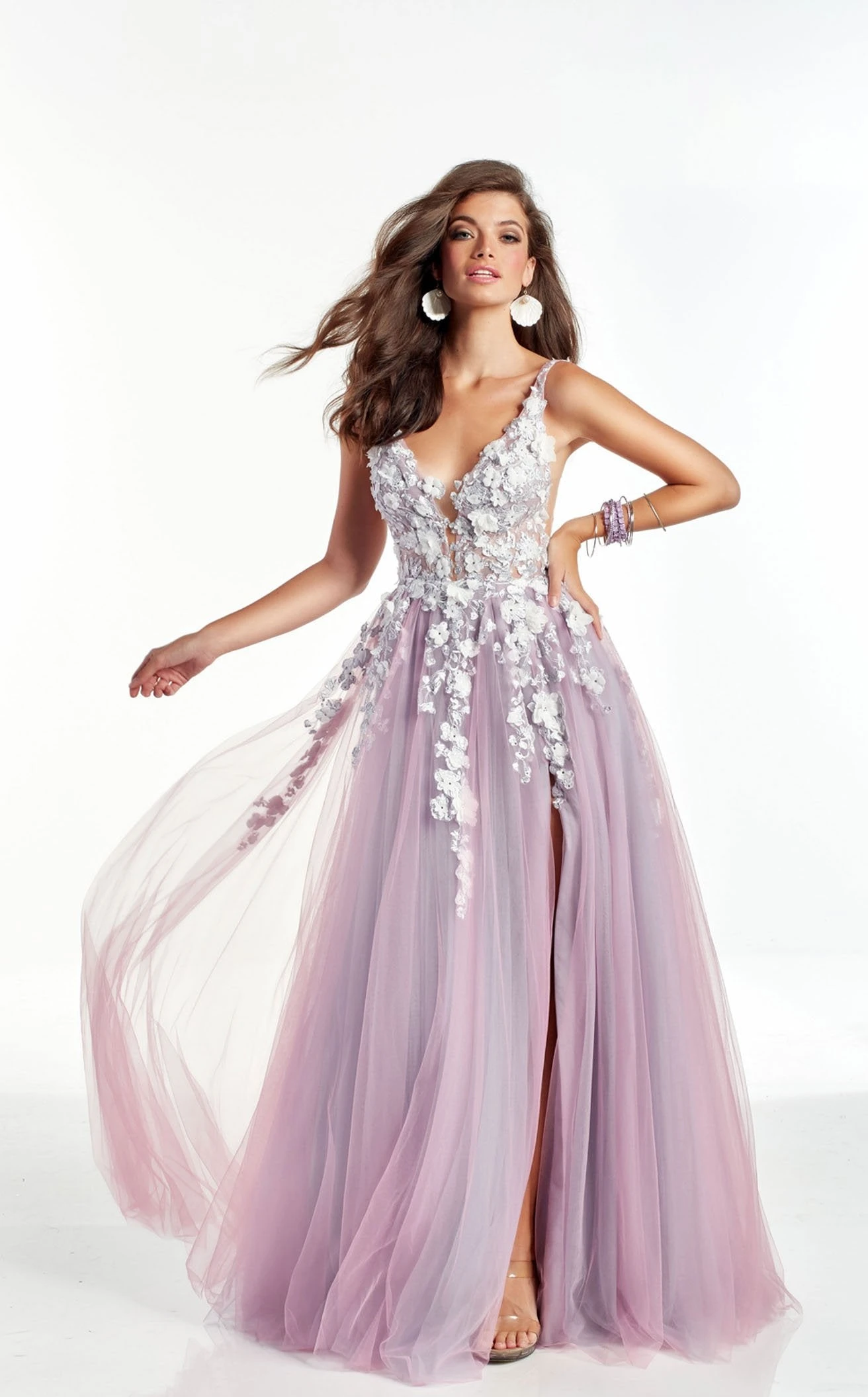 Look absolutely delightful in Alyce 60894 Dress. This stunning piece features a a-line silhouette and lace & embroidery. The sleeveless bodice has a v-neck neckline and a natural waist.