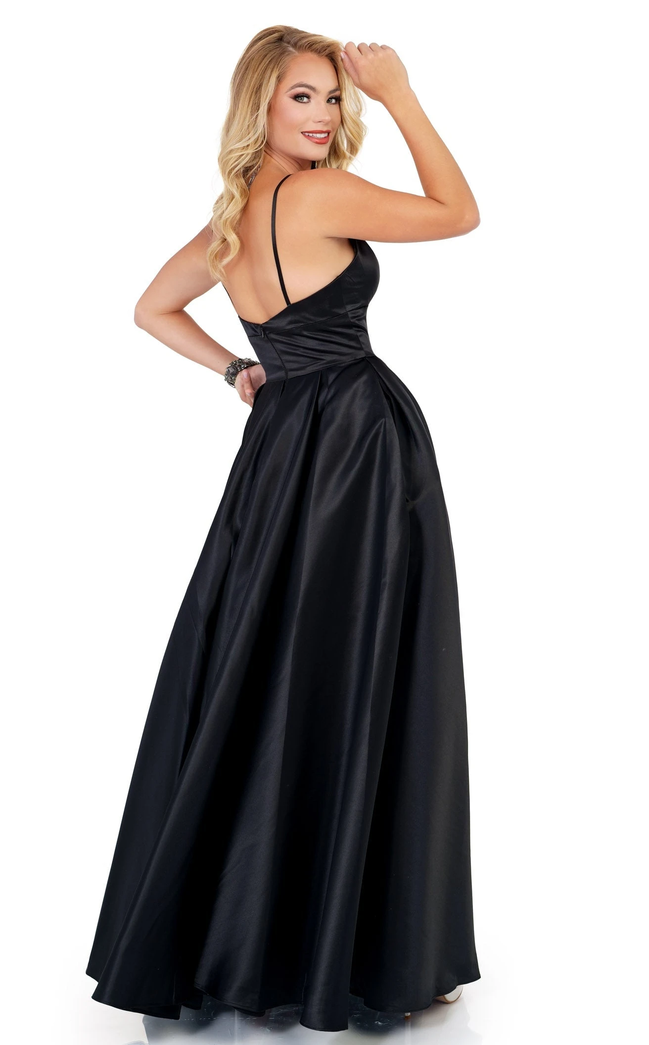 Look irresistibly stunning in this mesmerizing dress from the house of Cecilia Couture 1539. This head-turning beauty graces a fitted bodice with a plunging V-neckline and thin spaghetti straps. The flowy A-line skirt boasts a graceful thigh-high slit and adds a royal touch to your whole look.