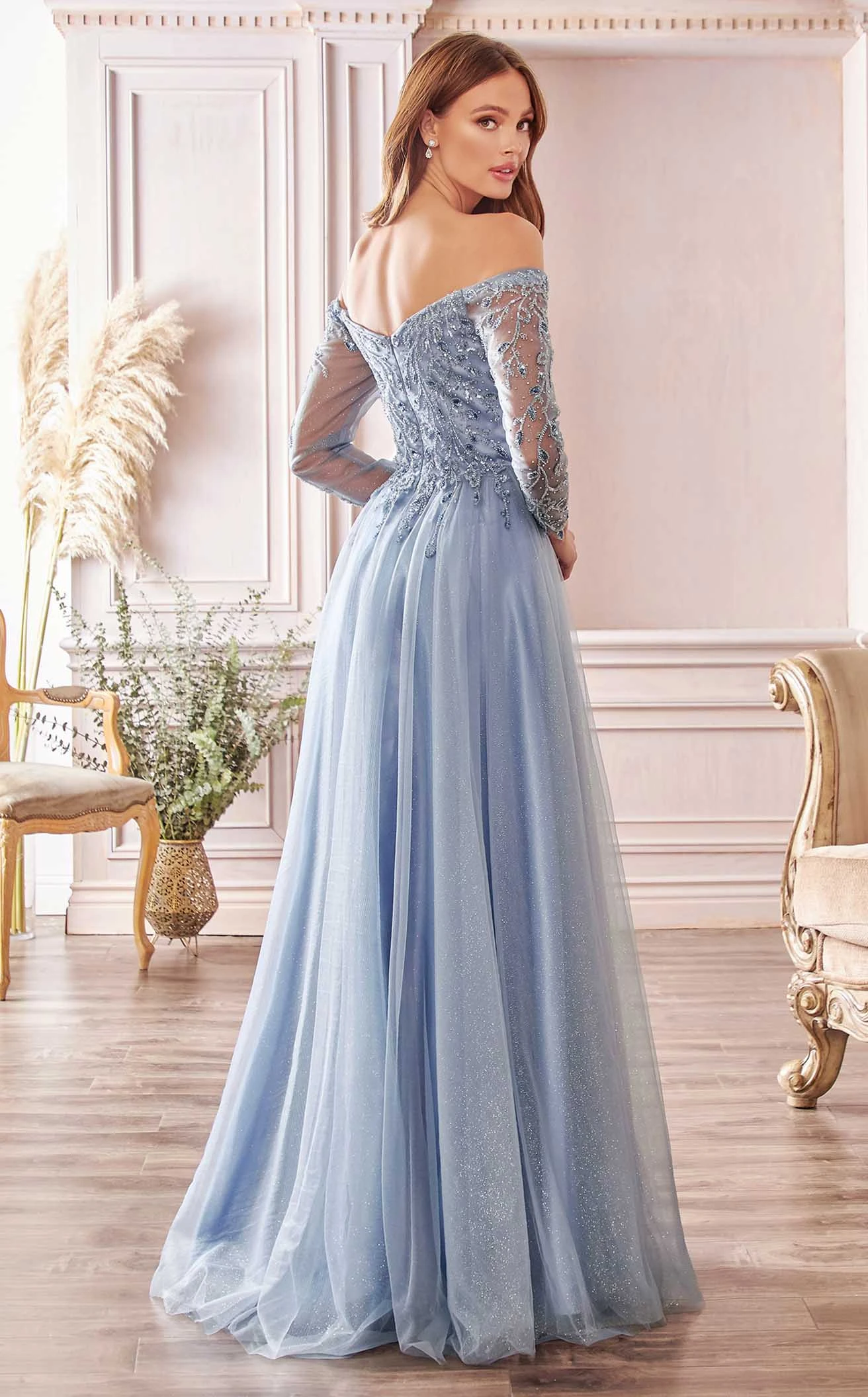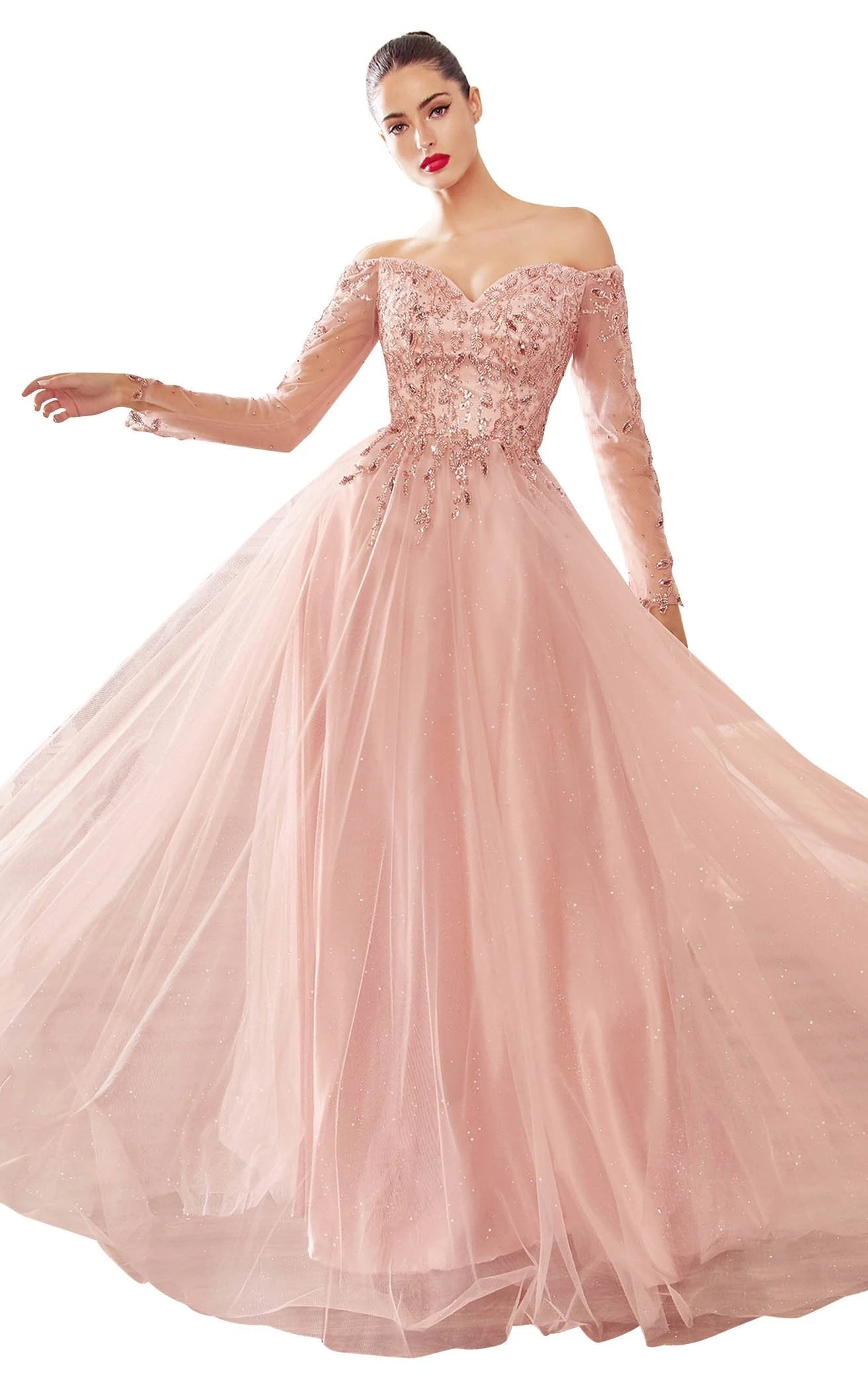 Look absolutely lovely in Cinderella Divine CD0172 Dress. This magnificent piece features a a-line silhouette and glittering accents. The long sleeve bodice has a unique neckline and a natural waist.