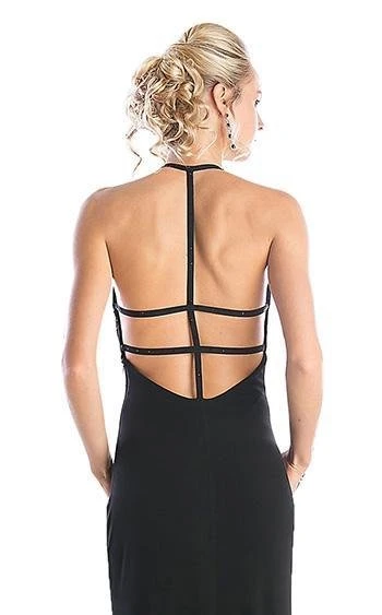 - Long, Sleeveless, Halter, Yes, Natural, Column, Glittering Accents, New, Pageant Dresses, Prom Dresses, Wedding Guest Dresses, Black, Jersey