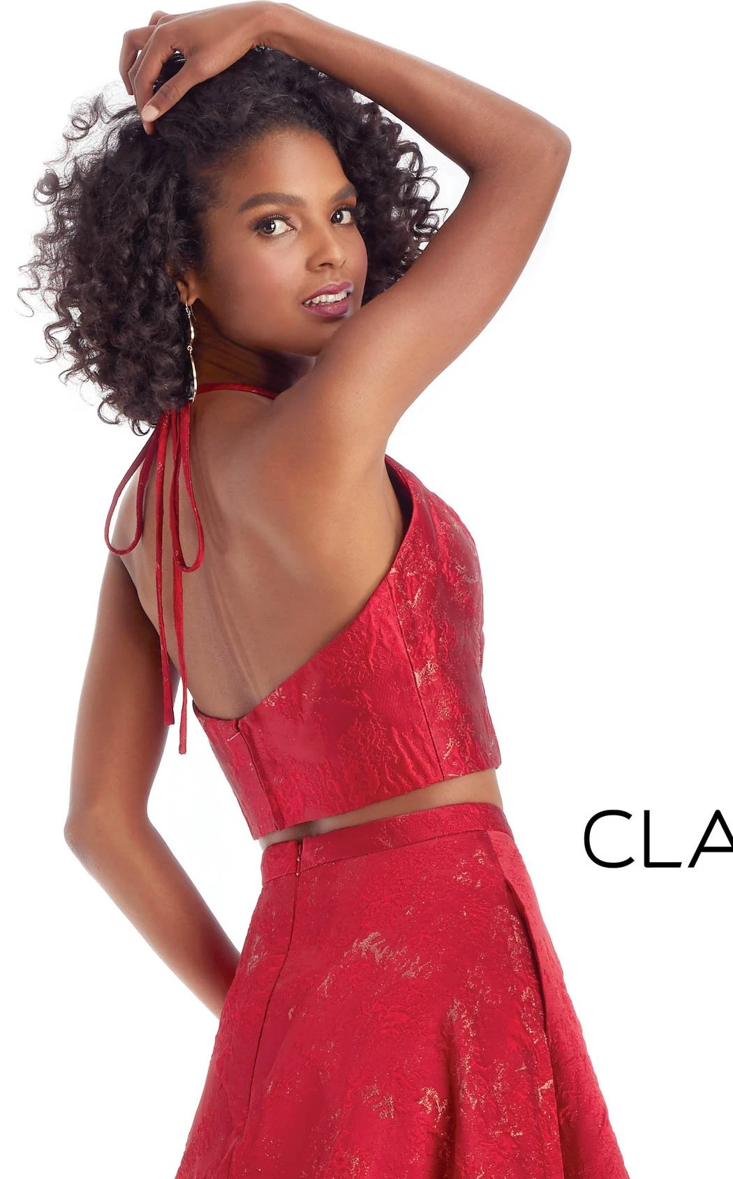 Glittery halter neckline A-line skirt cocktail dress by Clarisse