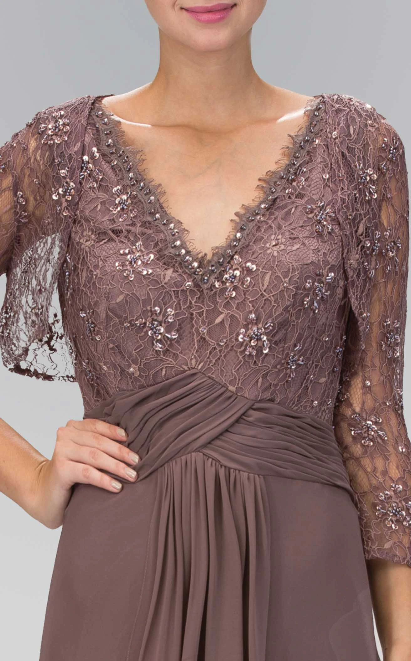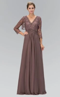 Gorgeous V-Neck Applique Ruched Long Dress by Elizabeth K