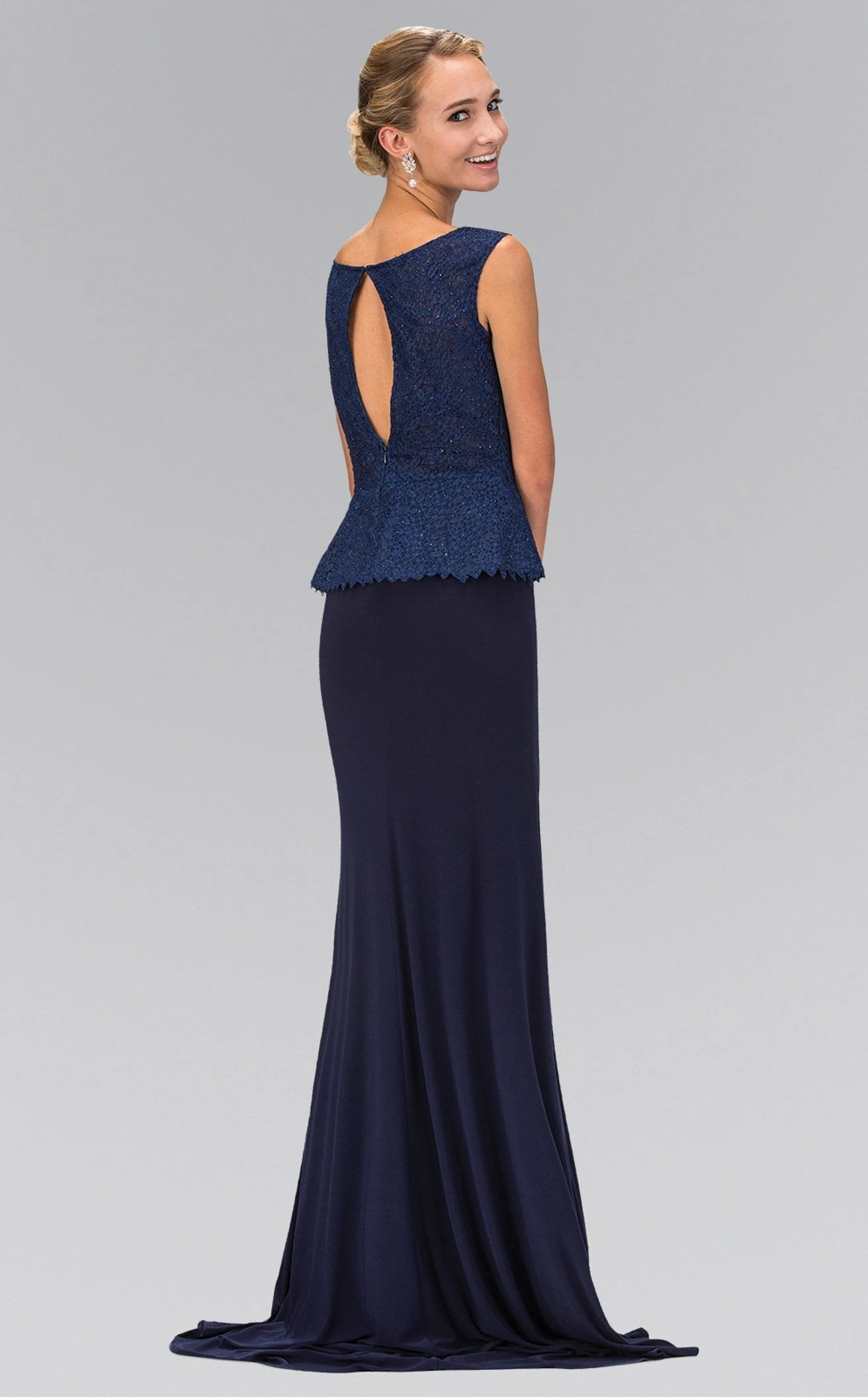 Shimmery Peplum Boat Neck Floor Length Dress by Elizabeth K