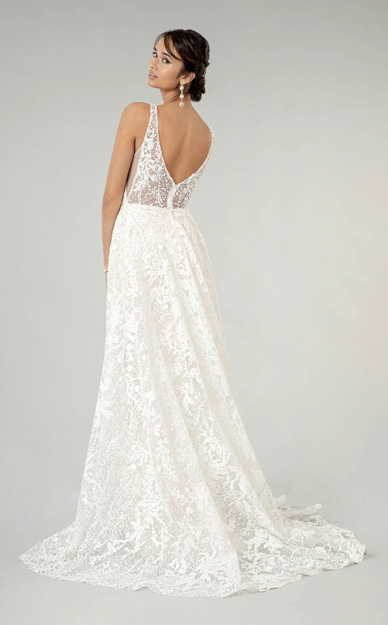 Deep Illusion V-neck with Sheer Side Wedding Gown Designed by Elizabeth K
