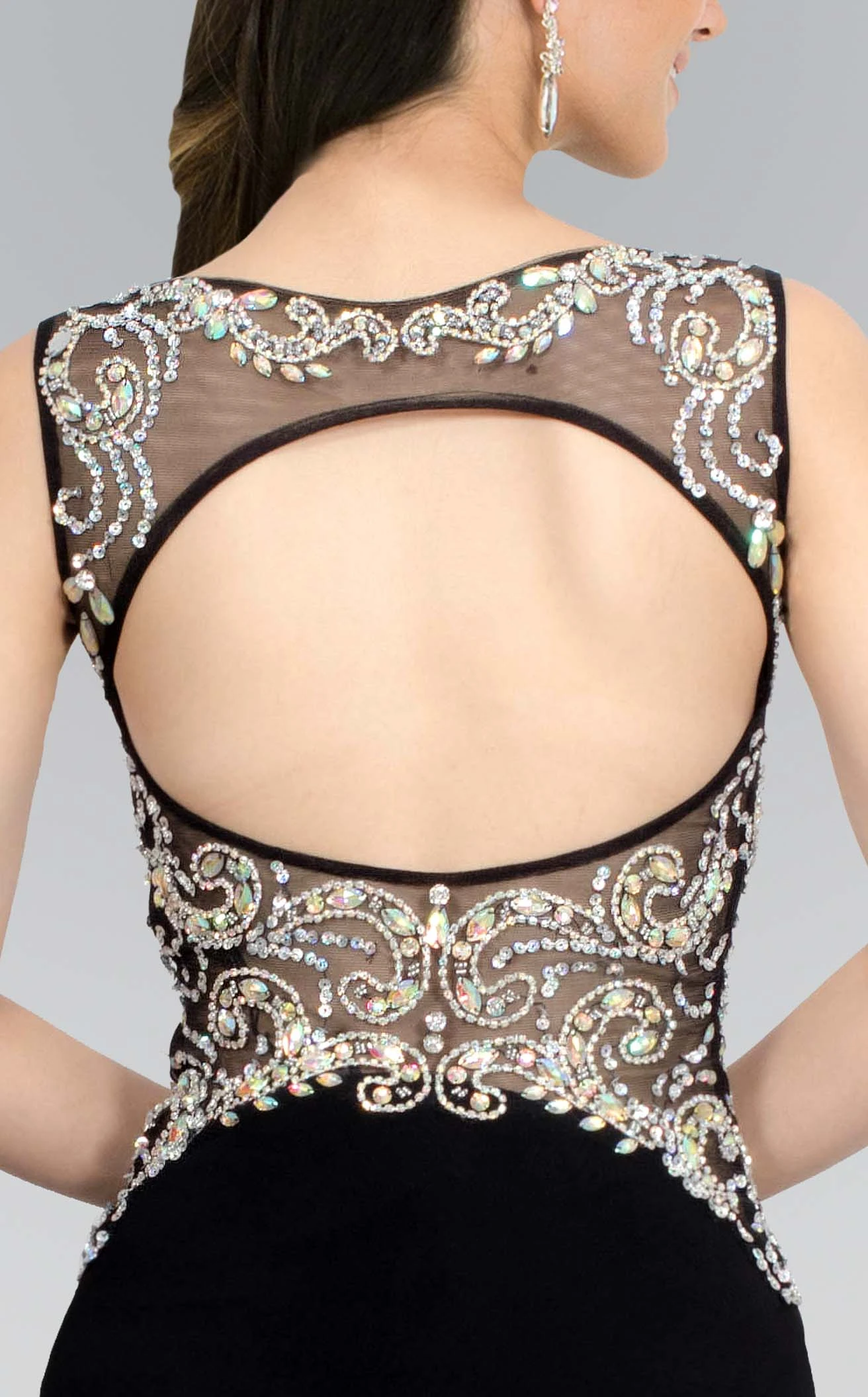 Embellished Sheer Bodice Sleeveless Trumpet Long Dress by Elizabeth K
