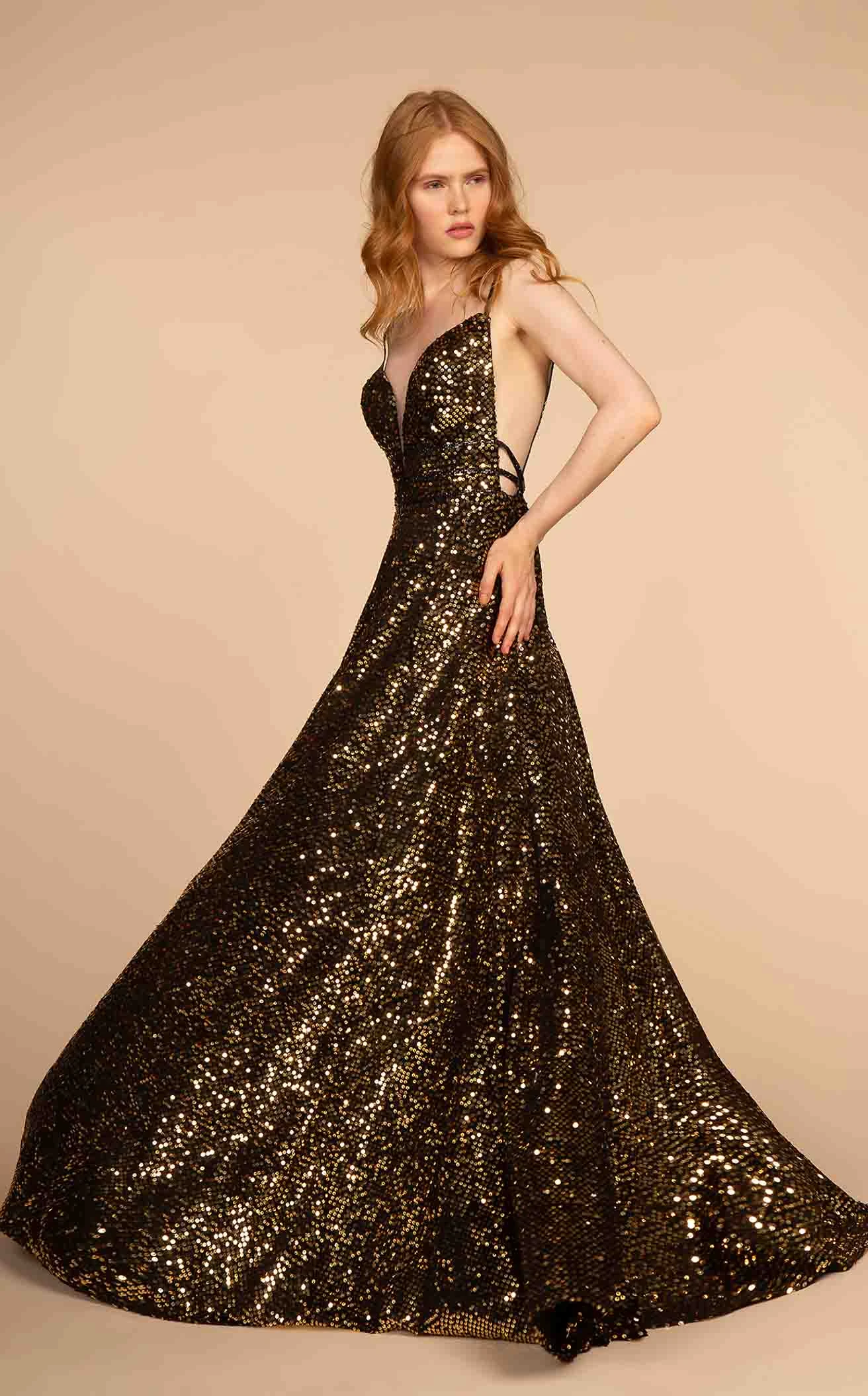 Flattering Illusion V-neck Sequined Ball Gown Dress by Elizabeth K