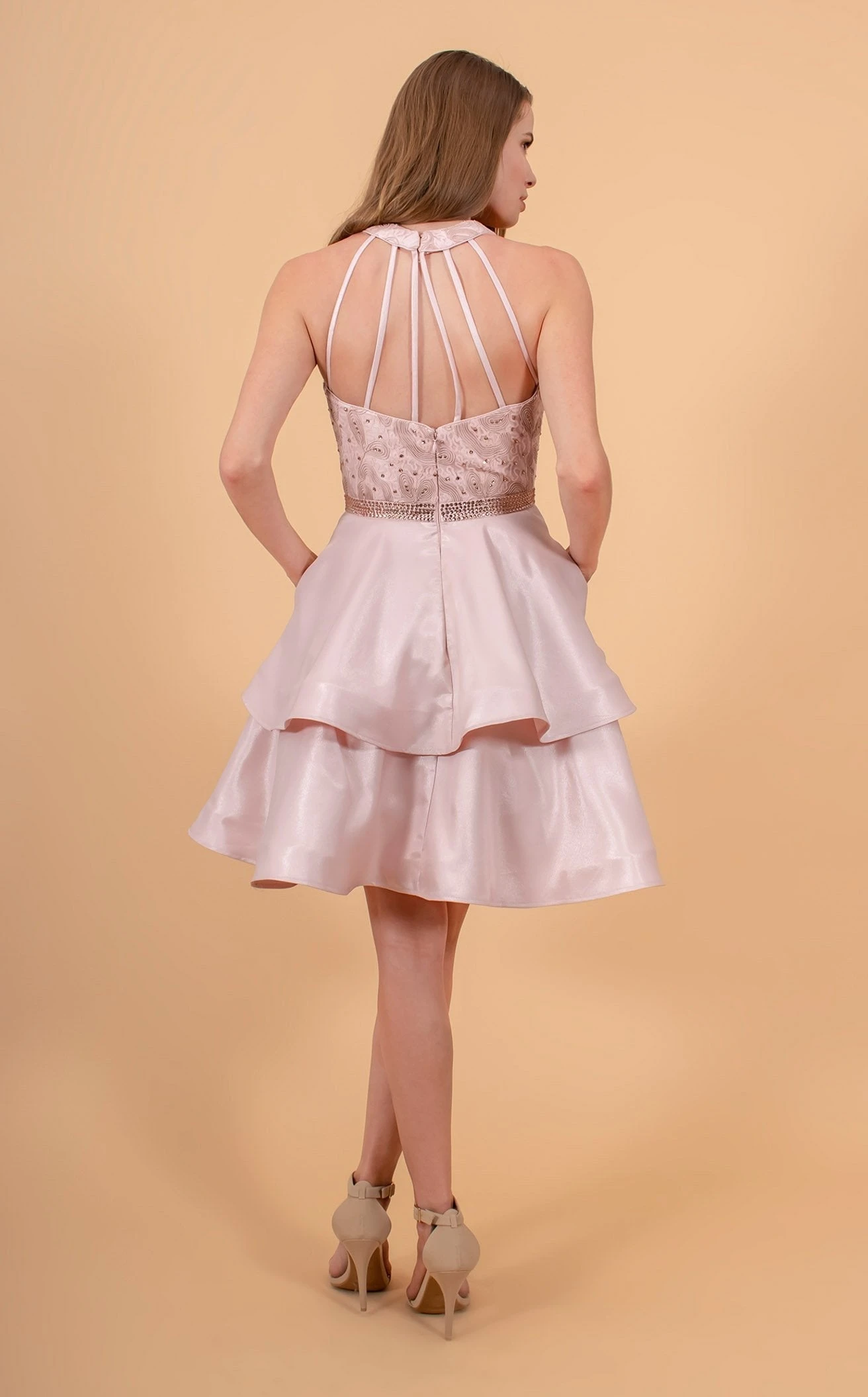 Glossy Embossed High Neck A-line Dress from Elizabeth K