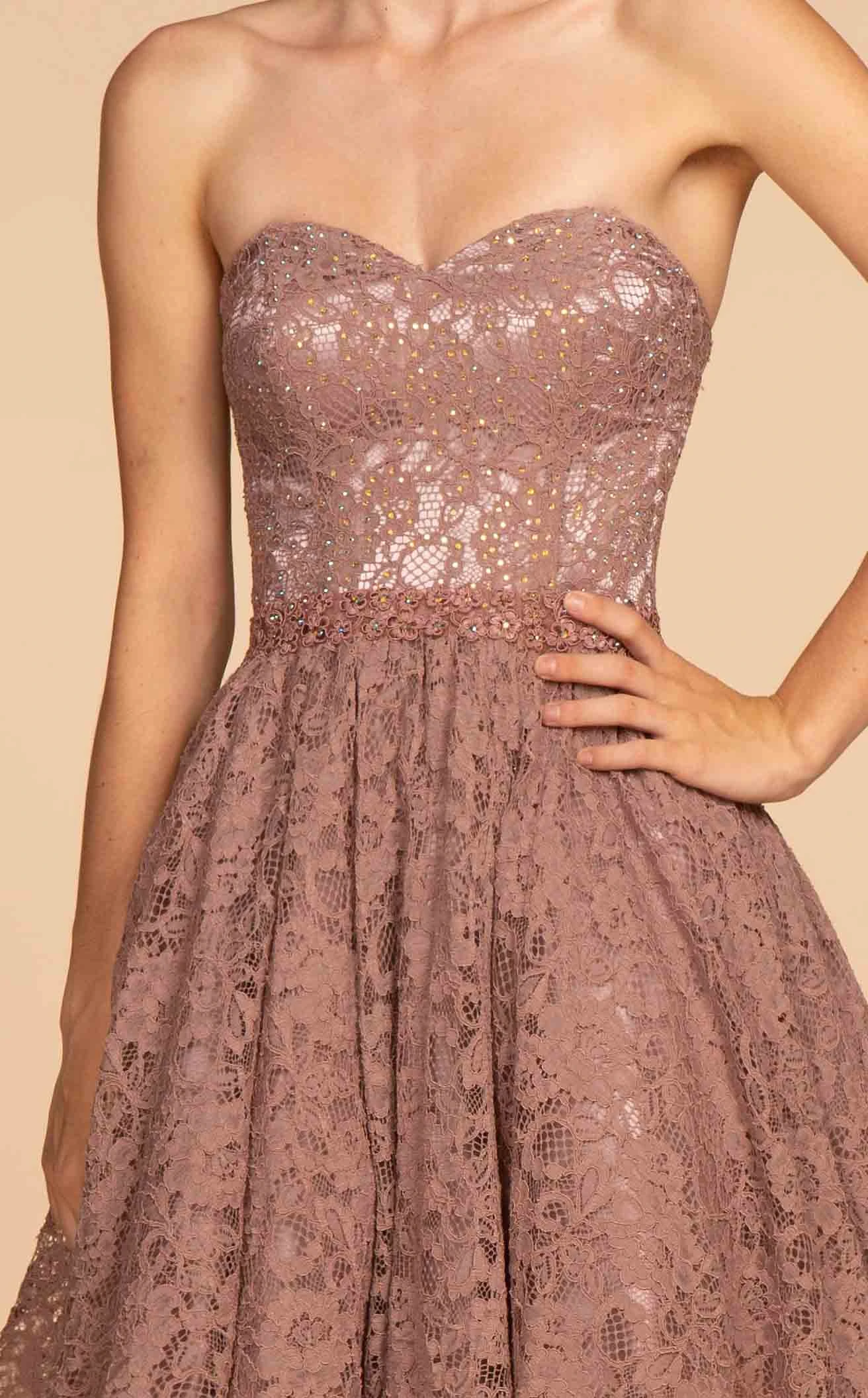 Fancy Lace Embroidered Strapless Short Dress from Elizabeth K