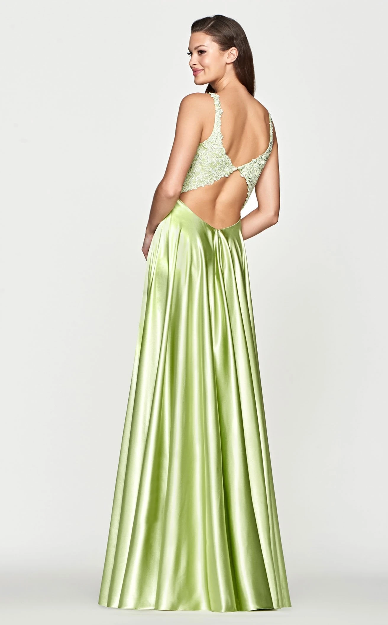 Glamorous V-neck Cut Back Charmeuse Dress by Faviana