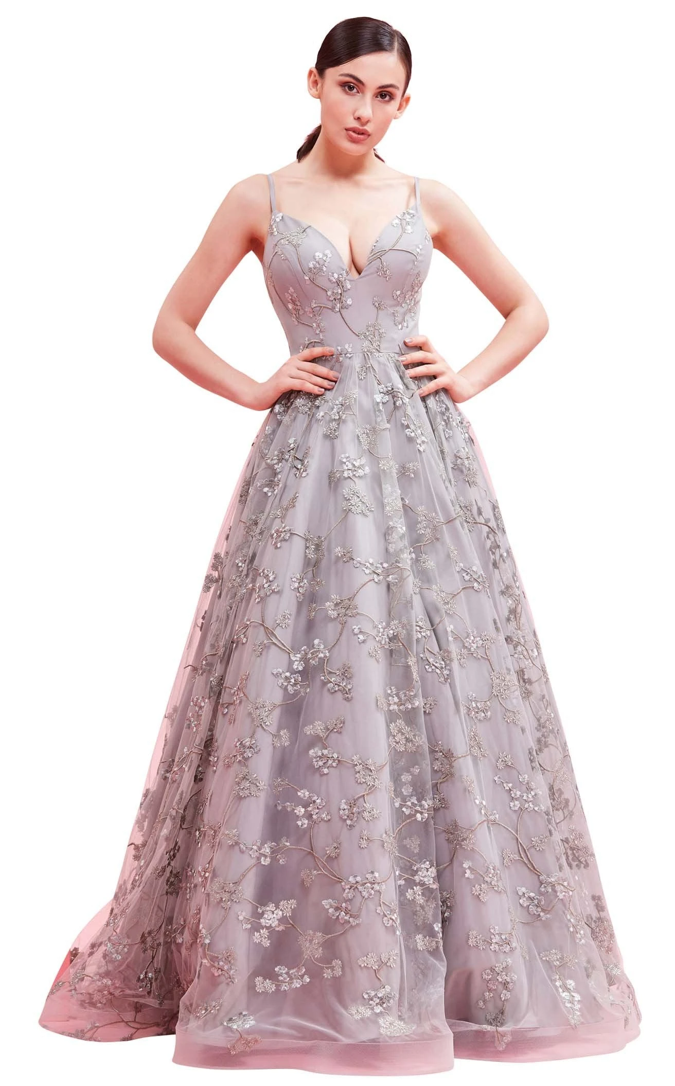 Glamour gets gorgeous with this Jadore J16025 gown. The dress is designed with a figure-flattering bodice that has a plunging neckline and straps that lead to a zippered back. The long skirt reaches a floor-length hemline in A-line silhouette that finishes off with layered tulle.