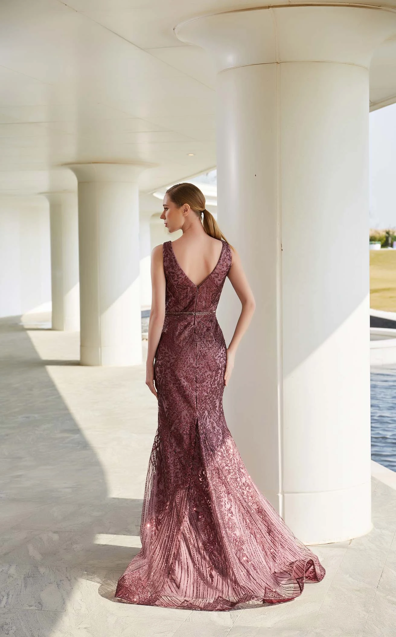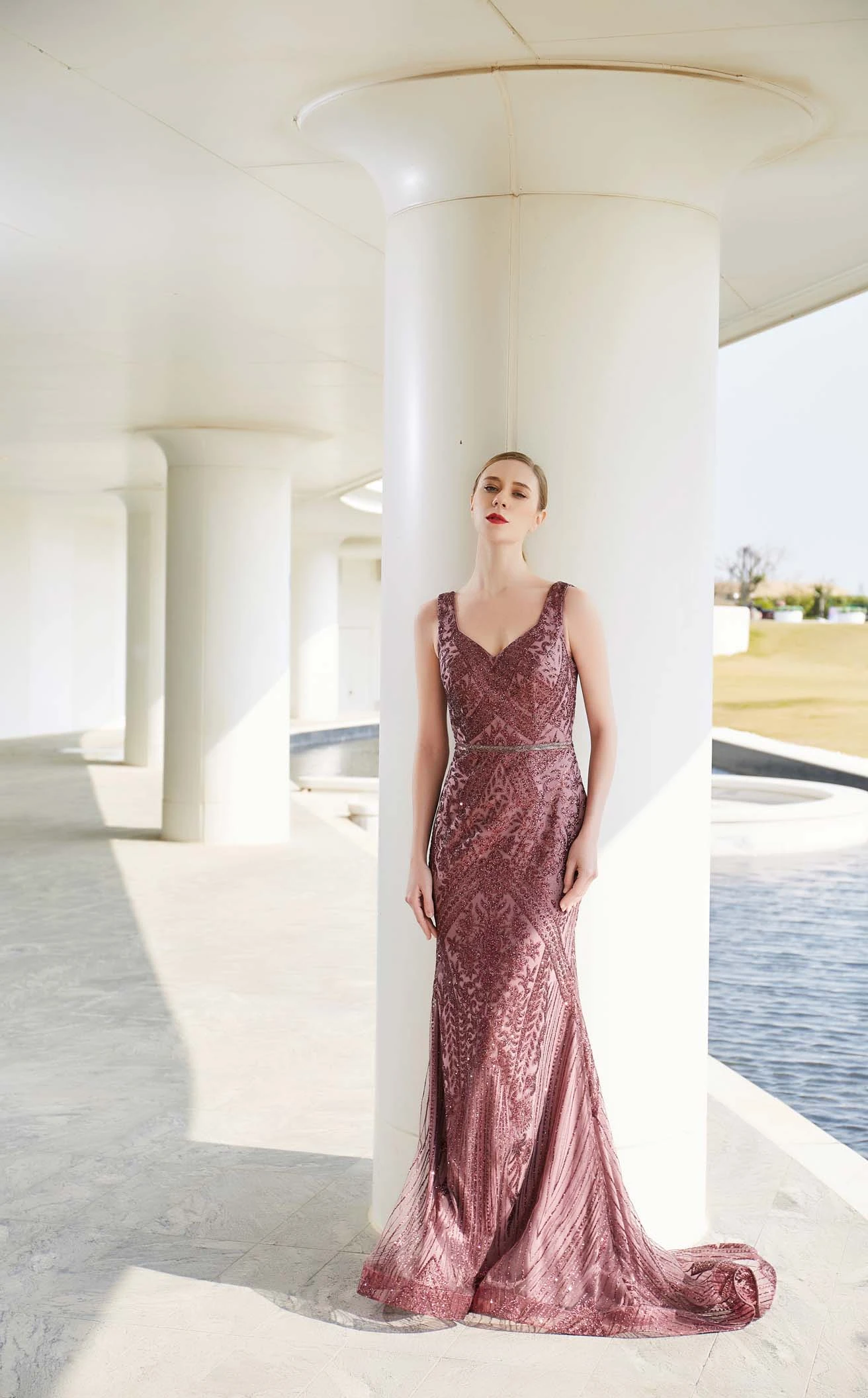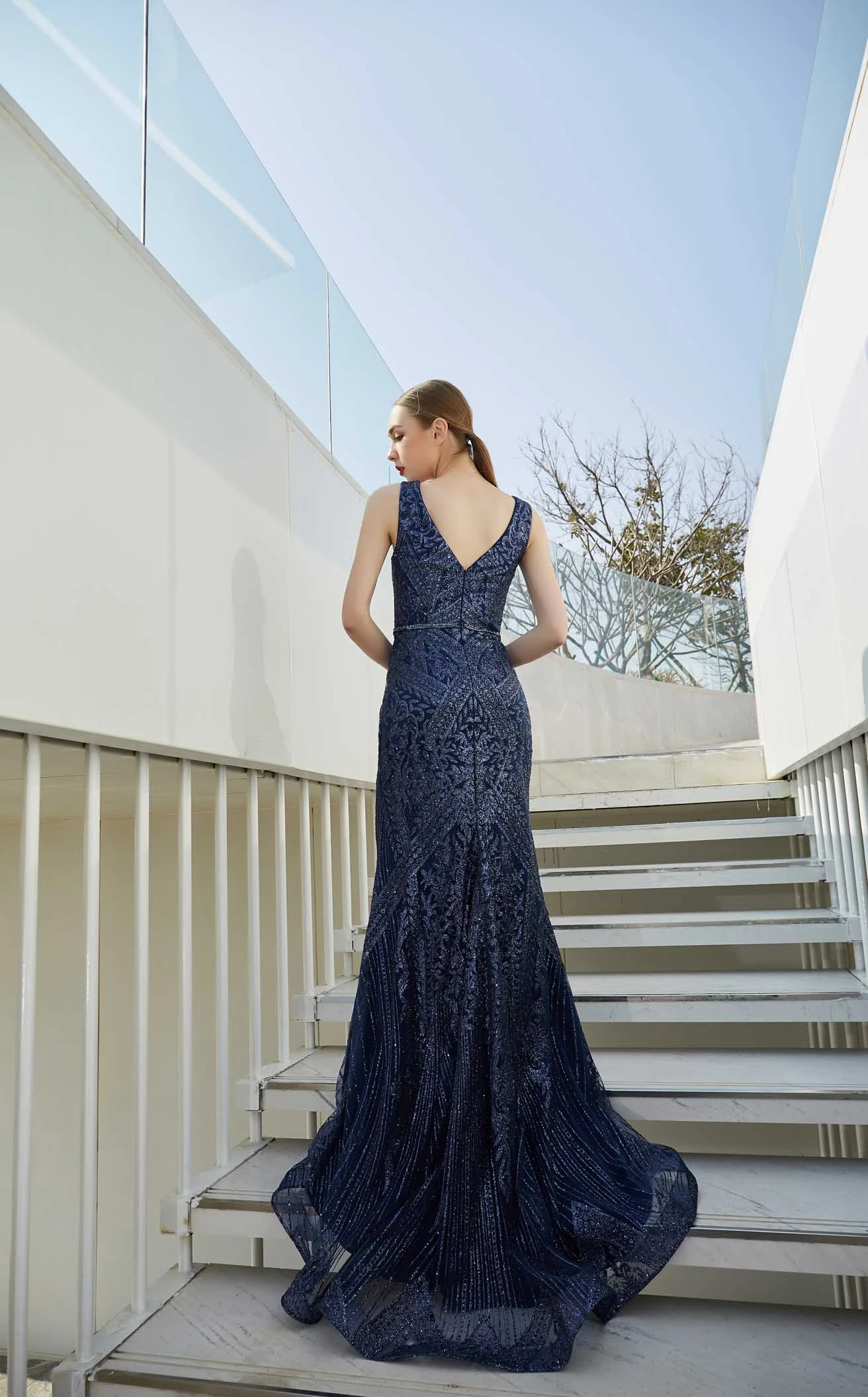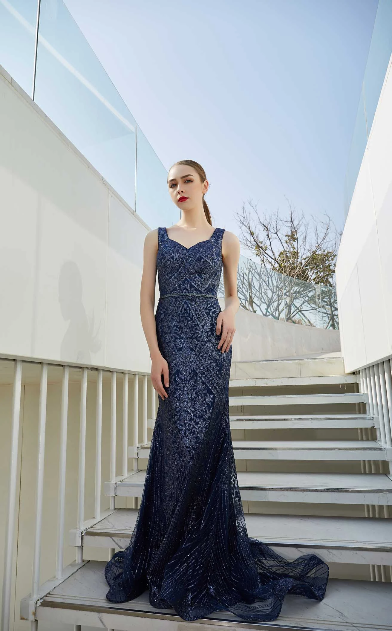If you’re looking forward to a dreamy evening then this long dress from the house of Jadore is for you. This lavish piece has a sweetheart neckline and V-cut back. Flaunting a charming floral applique pattern all over the mermaid silhouette, this dress is perfect for every occasion. It has a natural waistline that flows into a full-length hem with a sweep train.