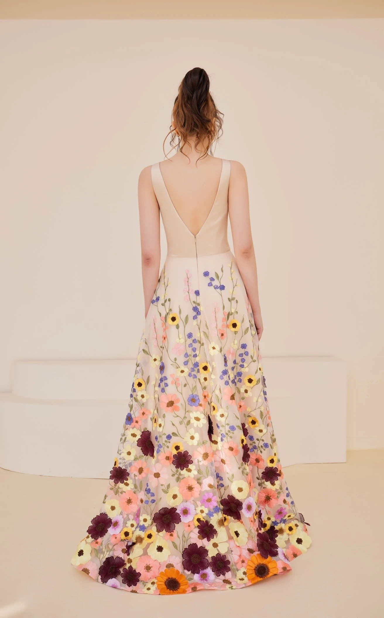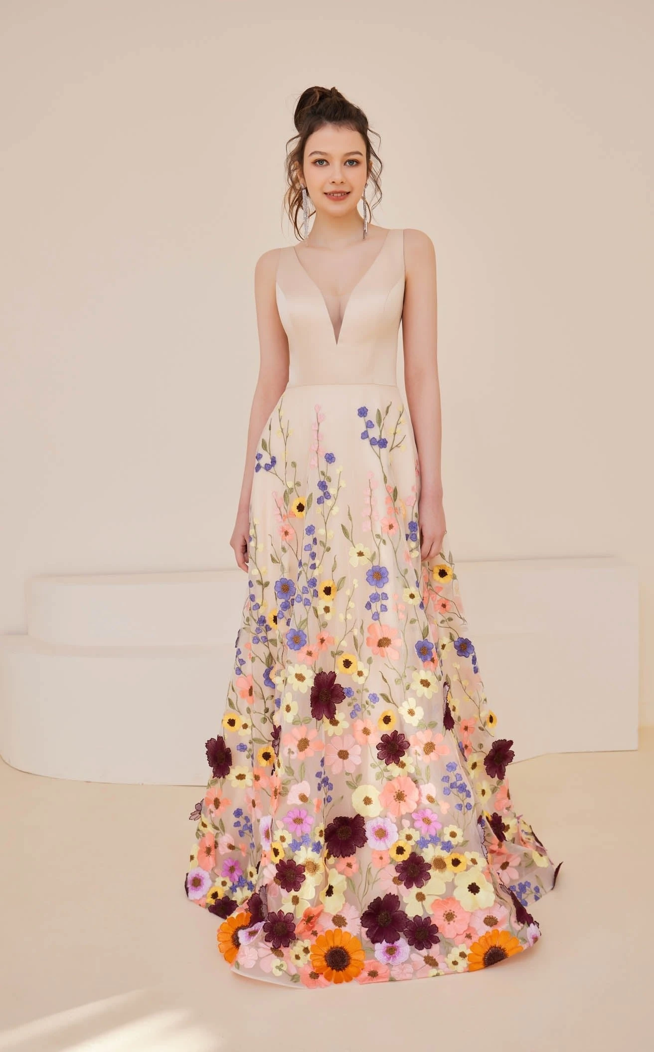 V-neckline 3D Floral Applique A-line Dress by Jadore
