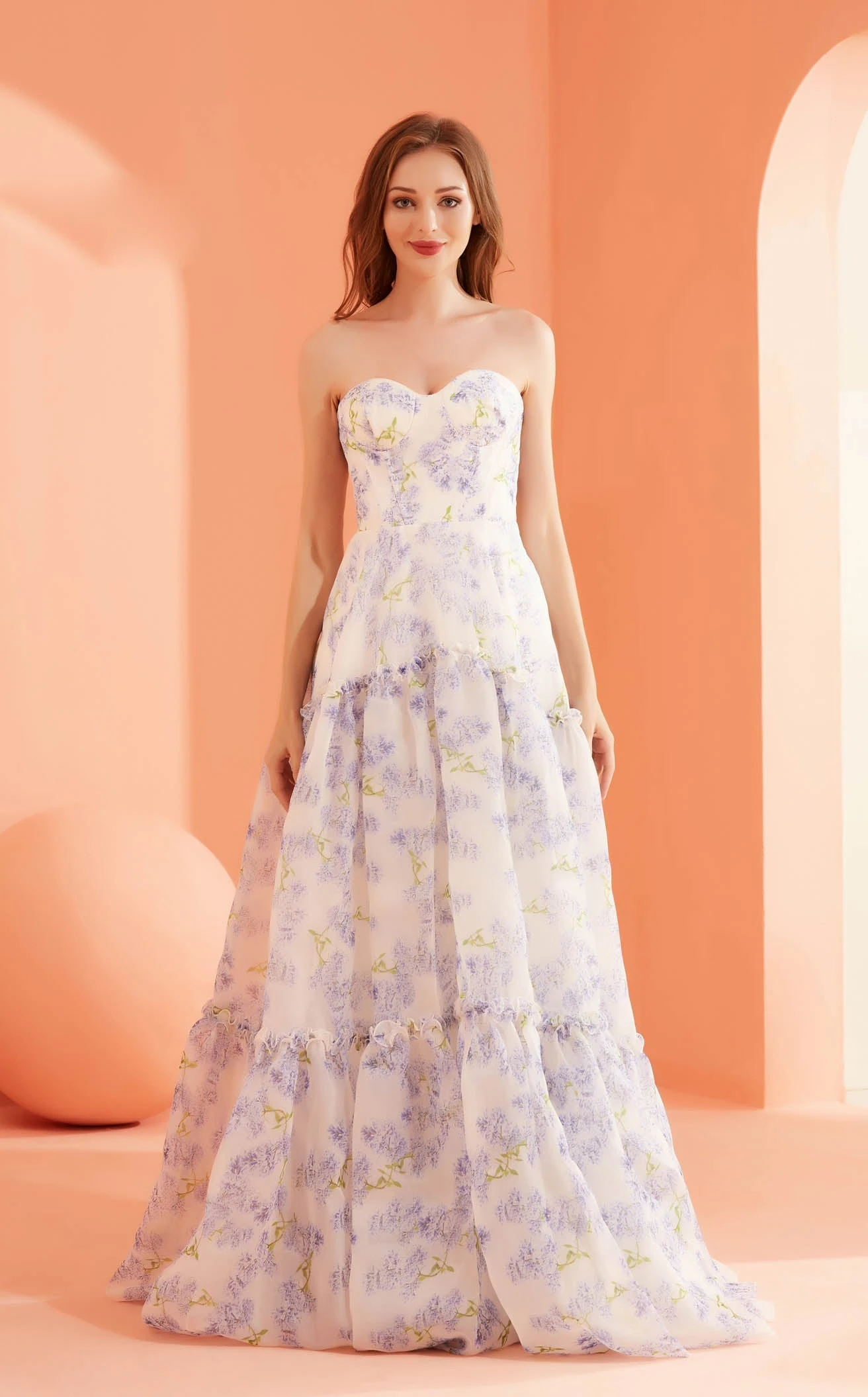 This soft-looking dress designed by Jadore J22008 will highlight your beauty. This strapless dress has a sweetheart neckline on a corset bodice that adds value to the dress. It has a natural waistline aligned with an extensive A-line silhouette that is decorated with ruched lace and the hemline of the skirt creates a cloud on the floor.