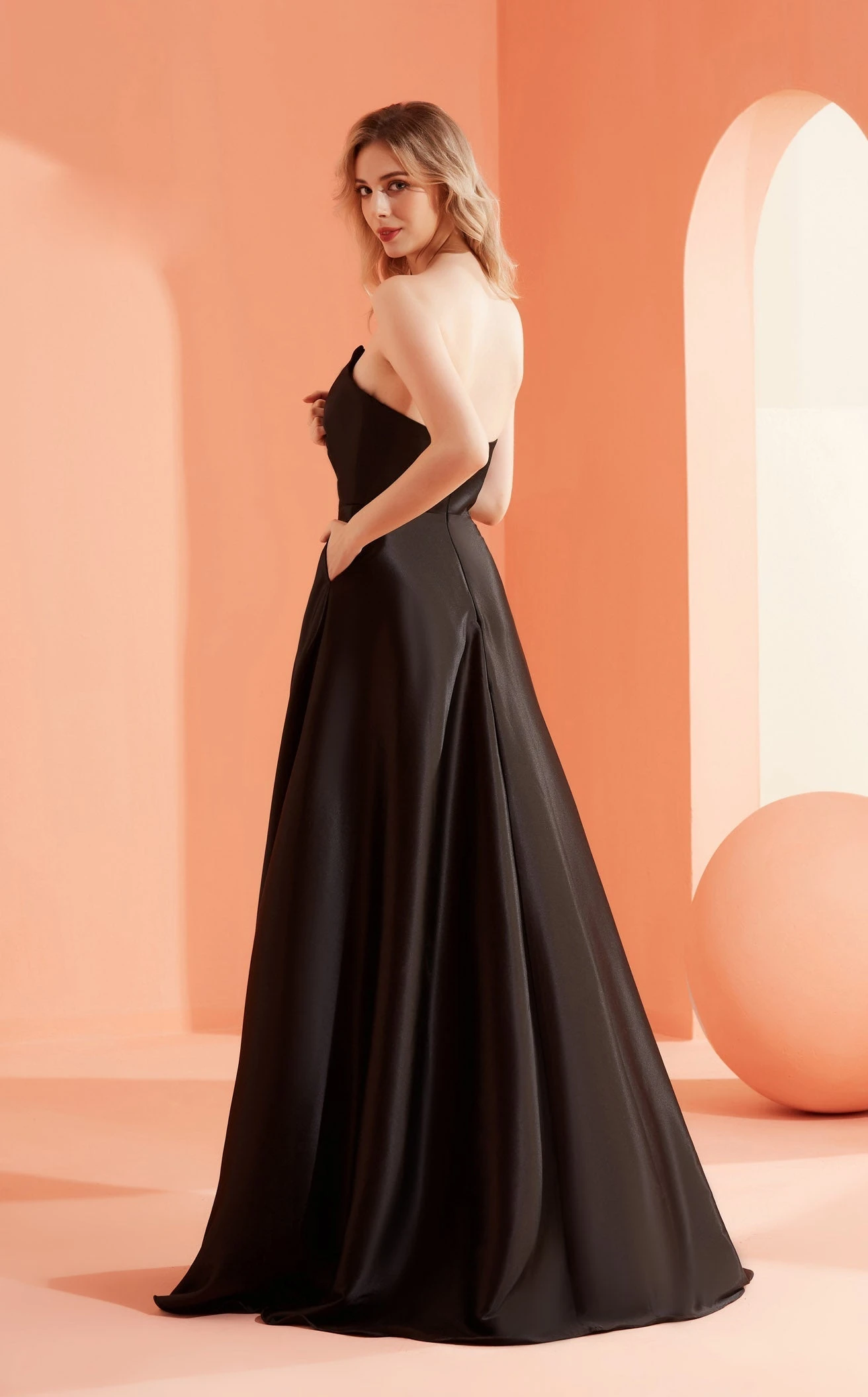 Be the main character in this heart-melting dress designed by Jadore J22034. This strapless dress features a V-neckline on a ruched bodice that has intricate detailing. Ideal for an evening party the dress offers an A-line silhouette that touches the floor and has a slit cut that allows you to showcase your favorite heels.