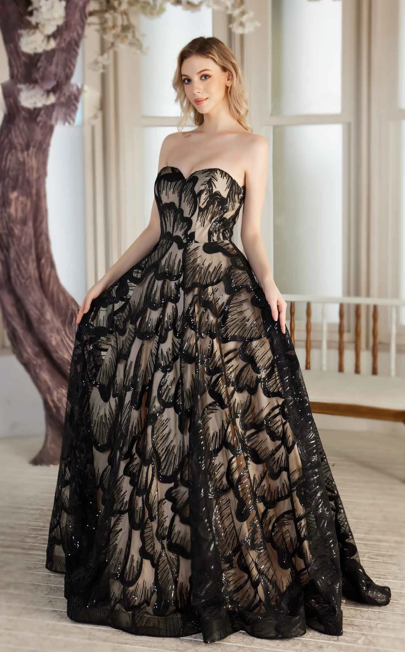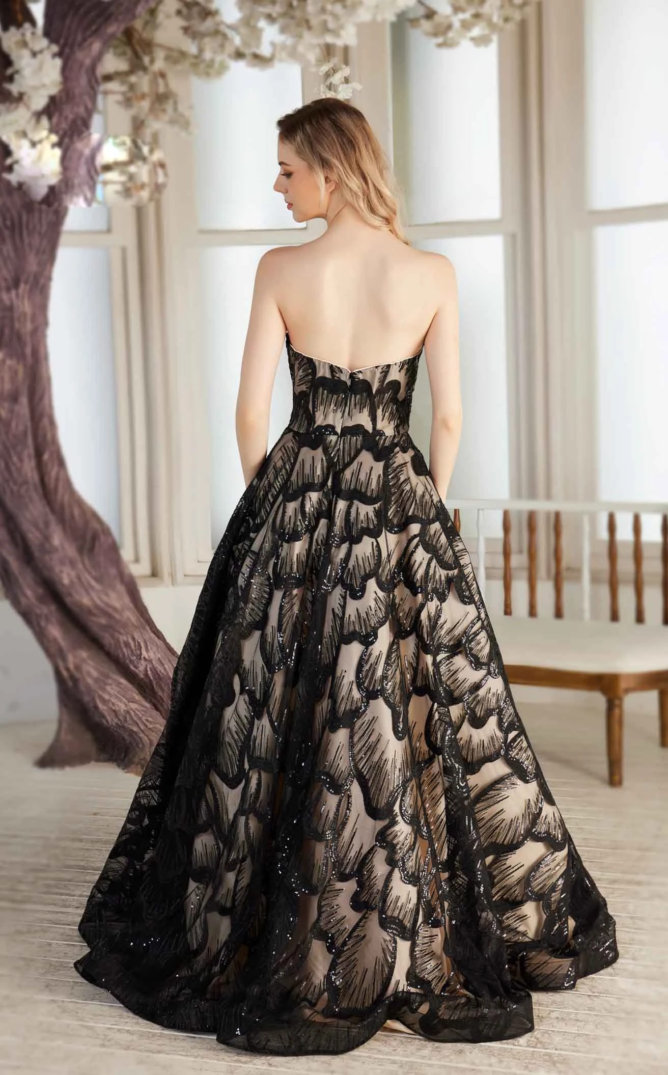 Splendid Floor-length Strapless Bead Decorated Voluminous A-line Dress by Jadore