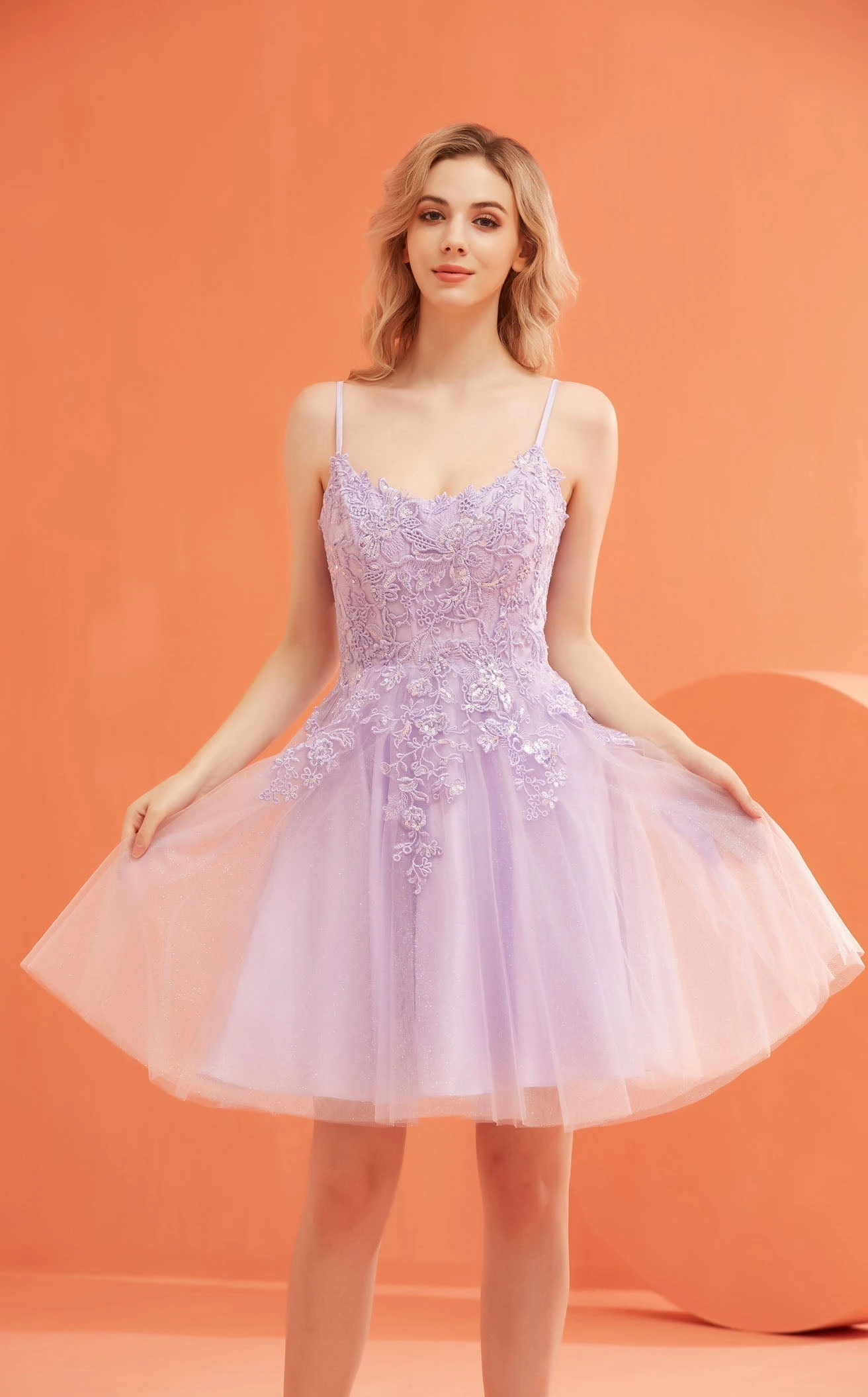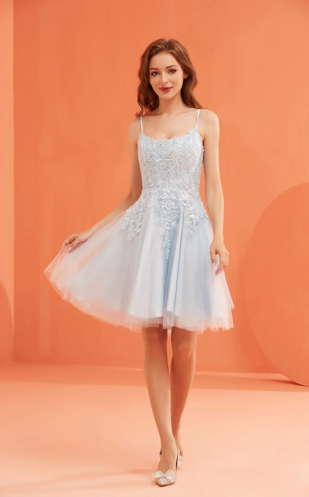 Captivating Scoop Neckline Shimmer Tulle Short Dress by Jadore