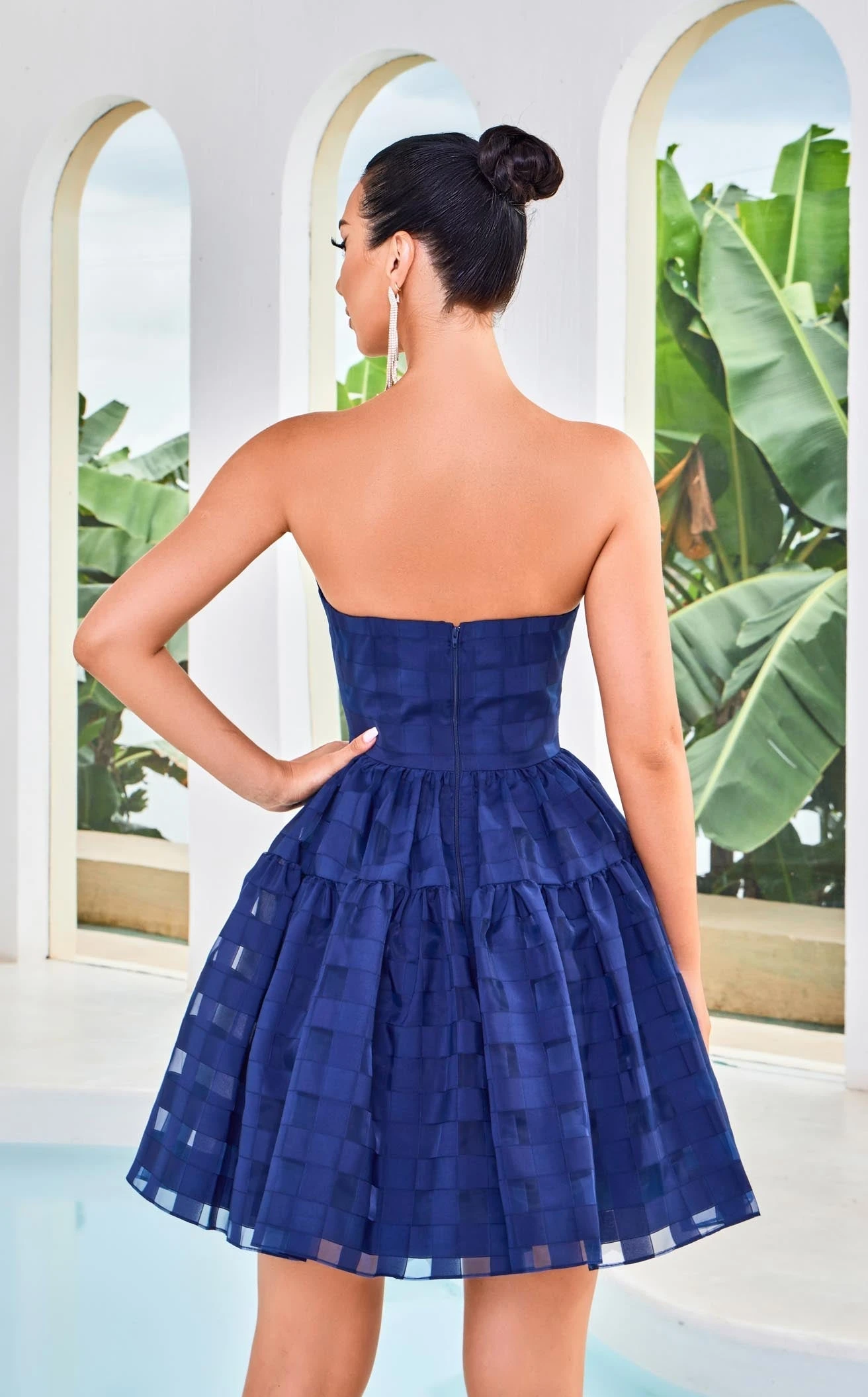 Steal the show in this strapless 24092 Jadore dress. This A-line dress comes with a modern twist. The across neckline adds a touch of sophistication, framing your collarbones delicately. The standout feature is an open back that adds a hint of allure and modernity. Embrace the perfect blend of chic and comfort as you flaunt your legs in this short dress, making a statement with each step you take.