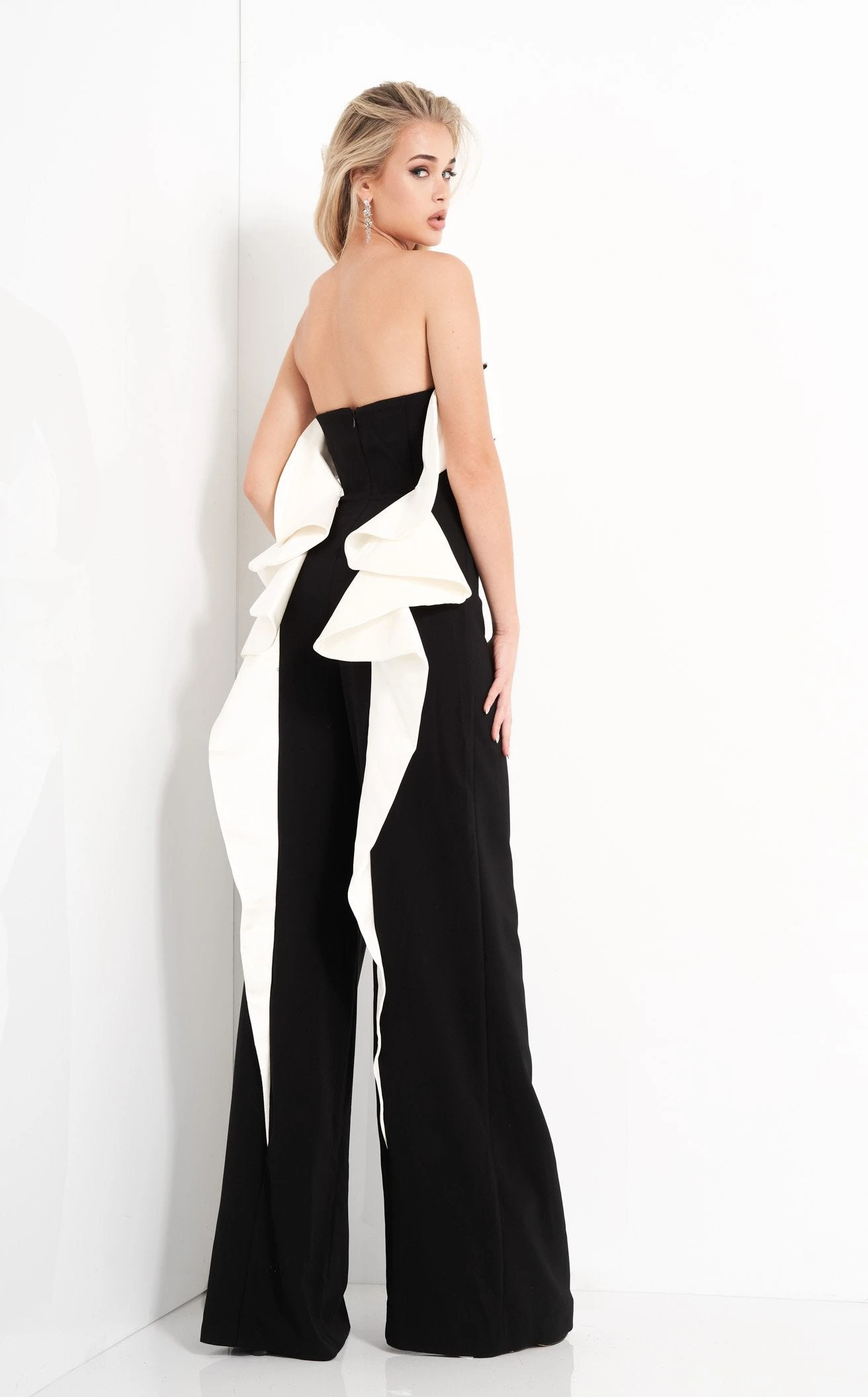 Look absolutely lovely in Jovani 04355 Jumpsuit. This wonderful piece features a column silhouette and simply chic. The sleeveless bodice has a strapless neckline and a natural waist.