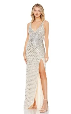 Look glamorous at the upcoming party in this remarkable two-piece dress from JVN by Jovani JVN4692. The fitted sleeveless crop top has a high neckline and is accentuated by lace-up detail on either sides. A keyhole cutout detail at the back grabs extra attention. The dress is drenched with sparkling sequins for a dazzling look. The form-fitting sheath skirt flows to the mid-thigh length.
