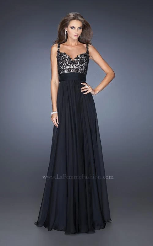 Look Dazzling in this La Femme 19882 Dress by La Femme. This dress features blackfriday19, Bridesmaid Dresses, bridesmaid_dresses, Column, eoy2019, la_femme, Lace & Embroidery, Long, Natural, New, No, Other, prom_under_300, Sleeveless