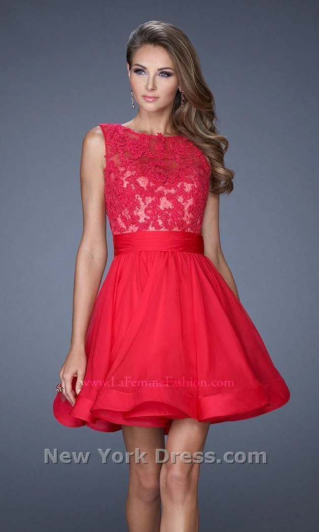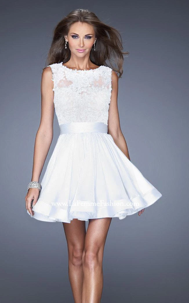 Look Dazzling in this La Femme 20429 by La Femme. This dress features A-Line, as_seen_in, bat_mitzvah_dresses, eoy2019, High Neckline, Homecoming Dresses, homecoming_dresses, la_femme_cocktail, Lace & Embroidery, Mini, Natural, No, Sleeveless