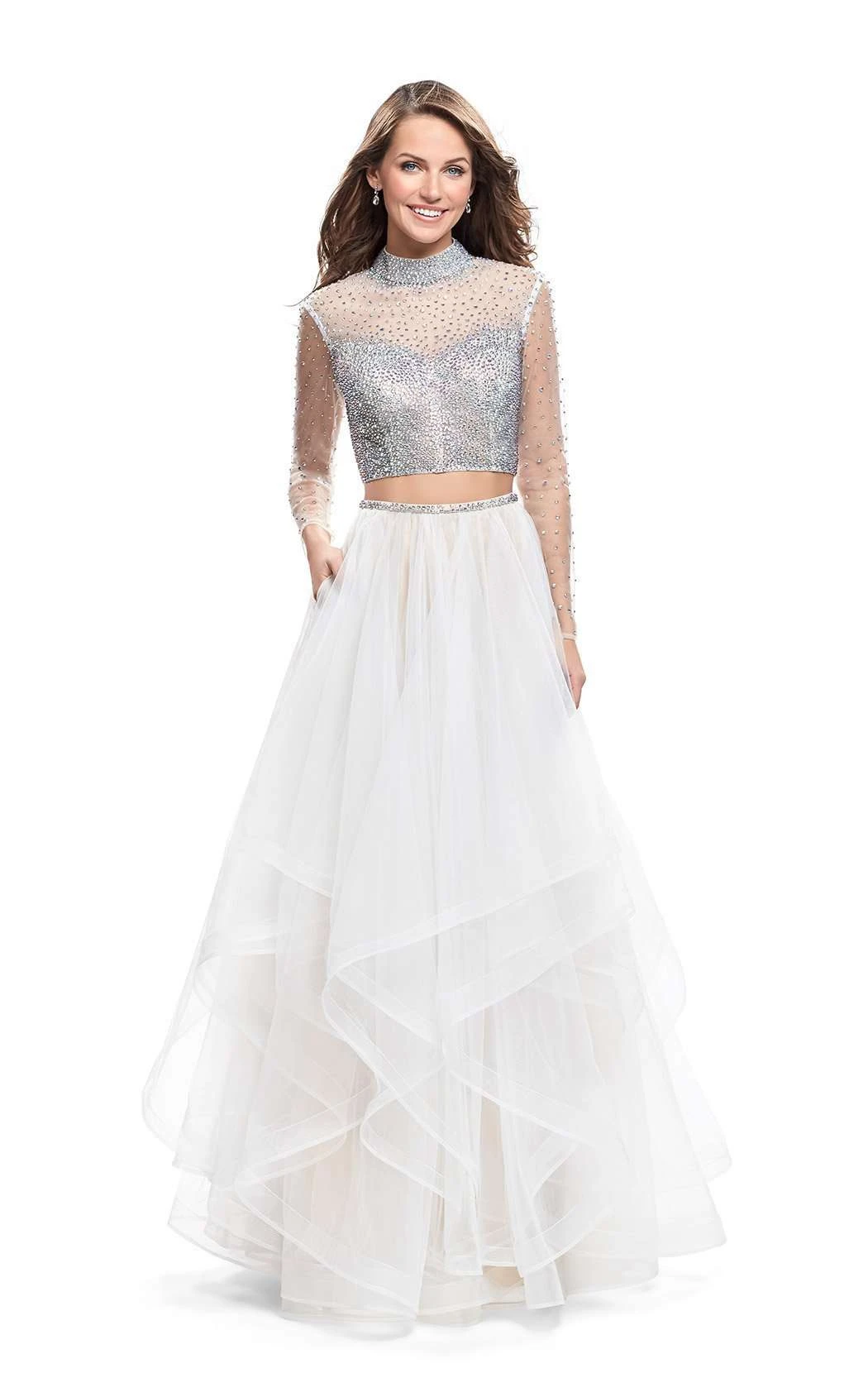 Two-Piece Shimmering Stones Evening Gown by La Femme