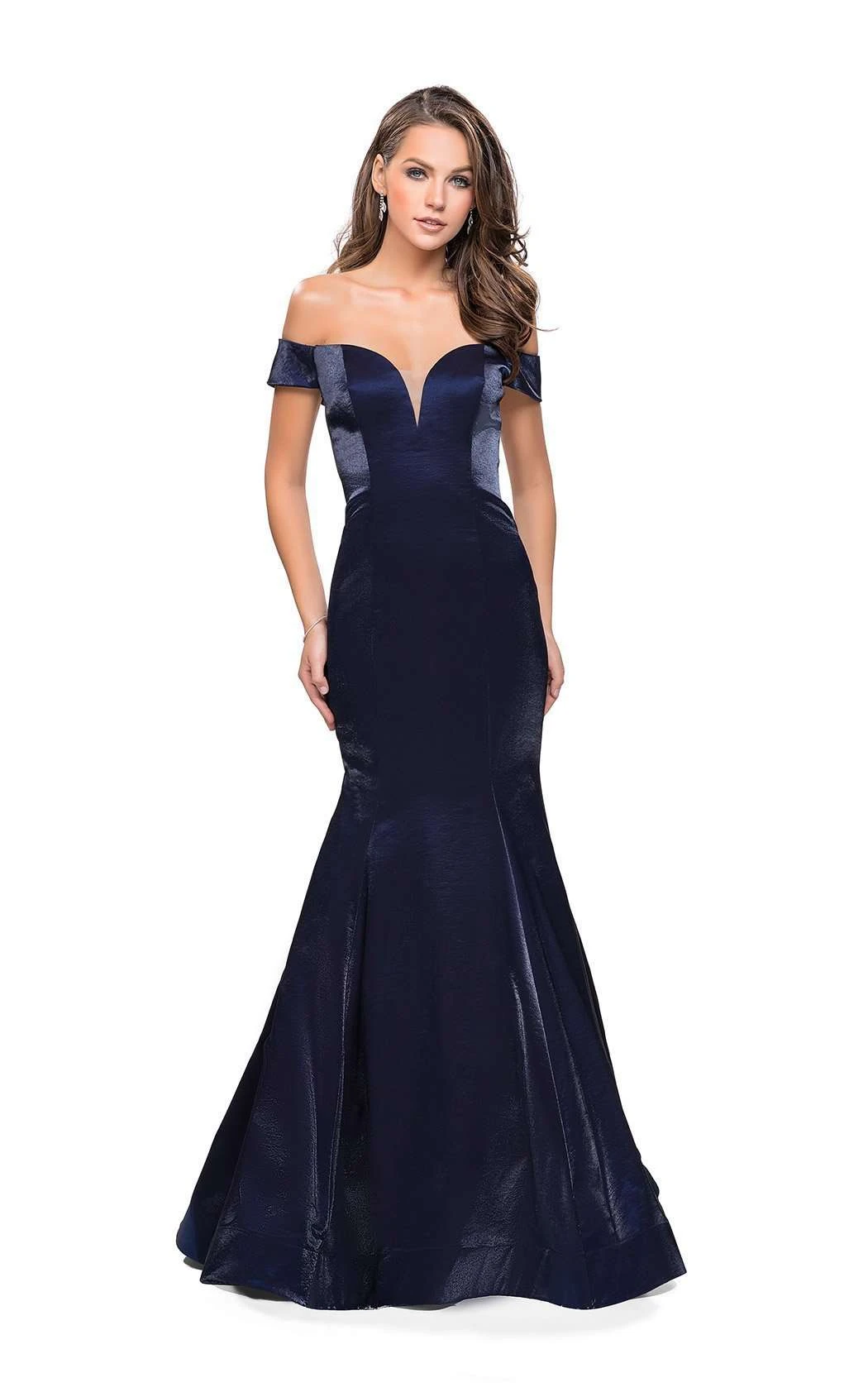 Deluxe off-the-shoulder formal with fluted skirt by La Femme