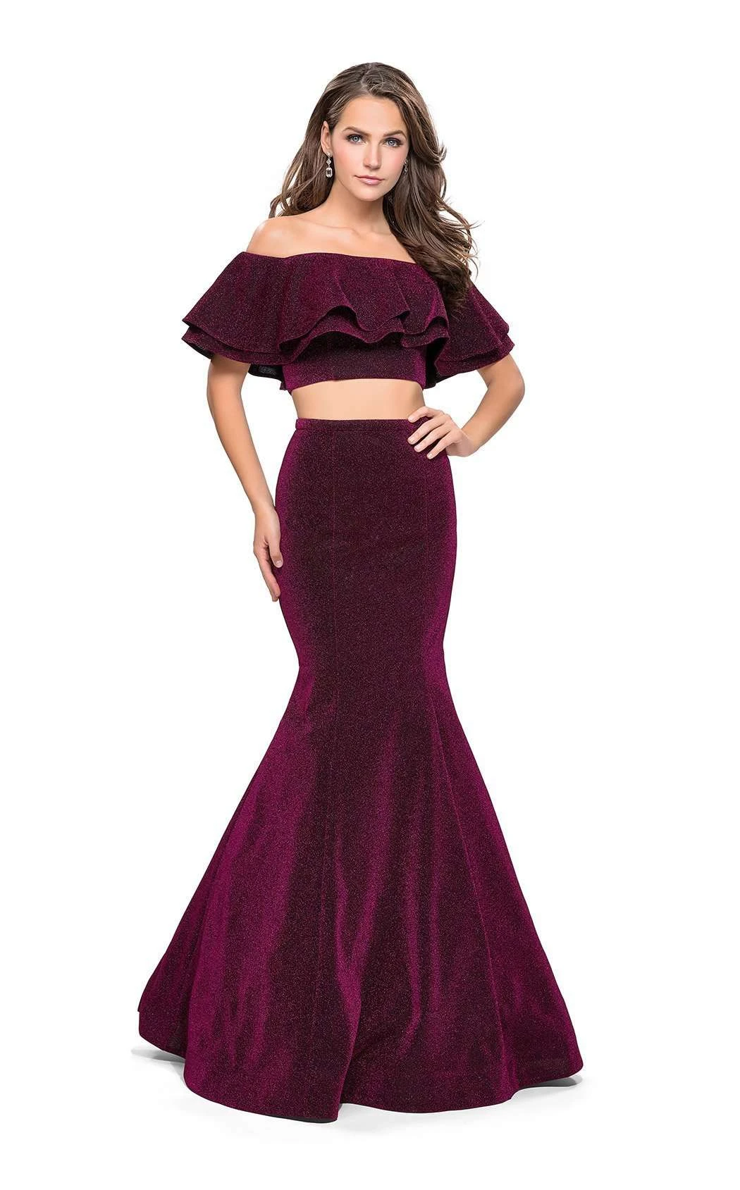 Dynamic off-the-shoulder formal with double ruffle by La Femme