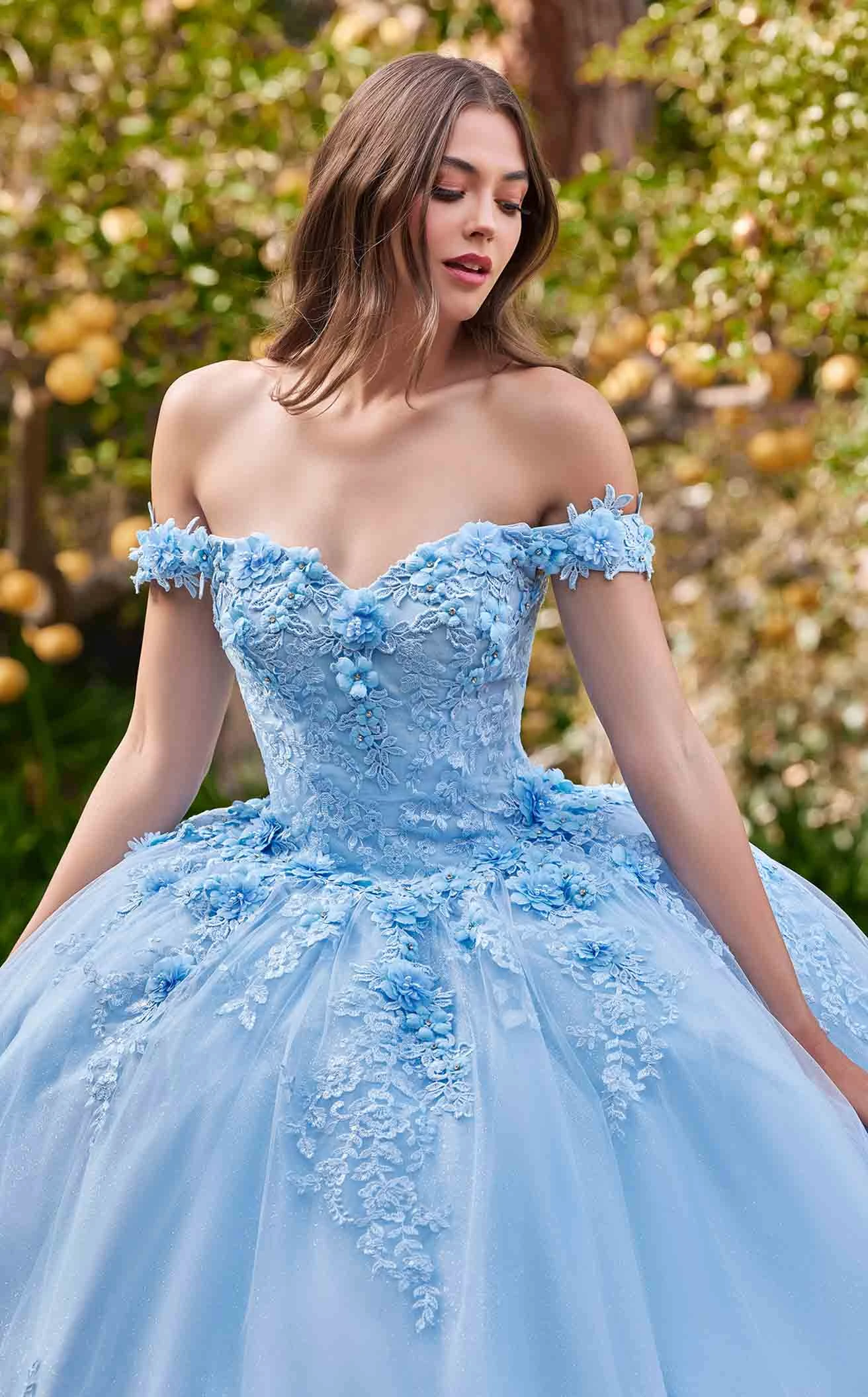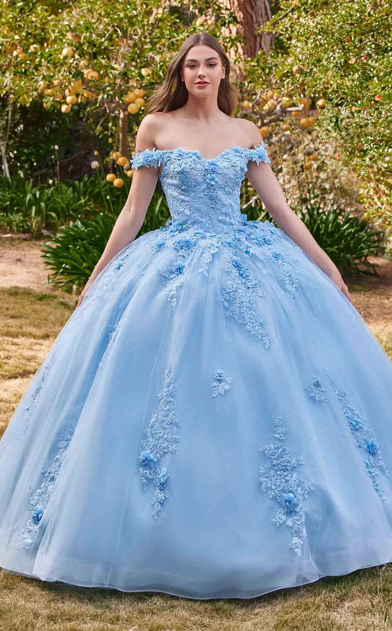 Make your own style statement by slipping into this magnificent Ladivine gown. It features a sweetheart neckline and short off-the-shoulder sleeves. The bodice is fitted and embellished with embroidered details and glitters. A full-length skirt with a voluminous cordon is followed by three-dimensional flowers and embroidery details on the waistline.