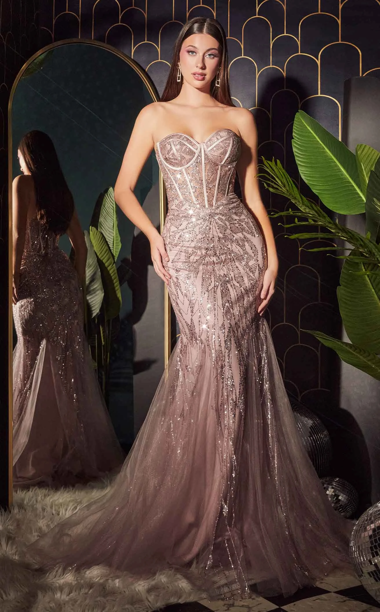 Make your grand entrance in this long dress designed by Ladivine. It offers a strapless sweetheart neckline and a corset bodice. The dress is appliqued with shimmering beaded lace, making it ideal for an evening party or event. It features a straight-line silhouette that touches the floor and billows with your steps.