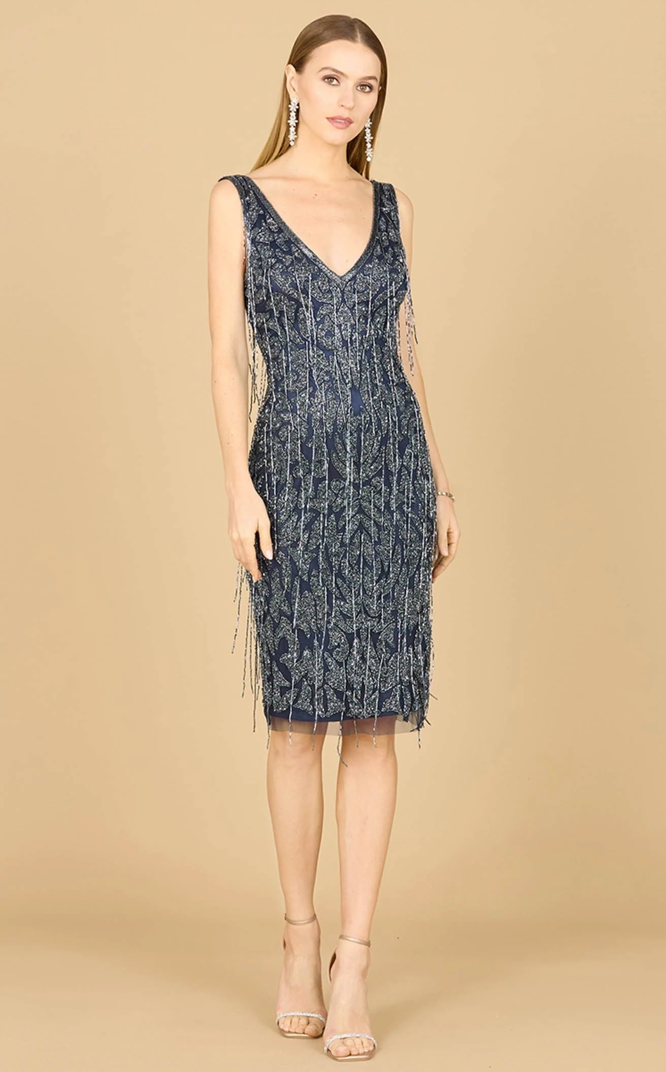 Embrace your magnificent fusion look donning the Lara 29216 dress. Look no further for the perfect evening dress. This V-neckline, sleeveless short dress is a stunning piece with allover beaded and fringe detailing guaranteed to make you shine at any party. This dress has everything you need to make an entrance wherever your night takes you!