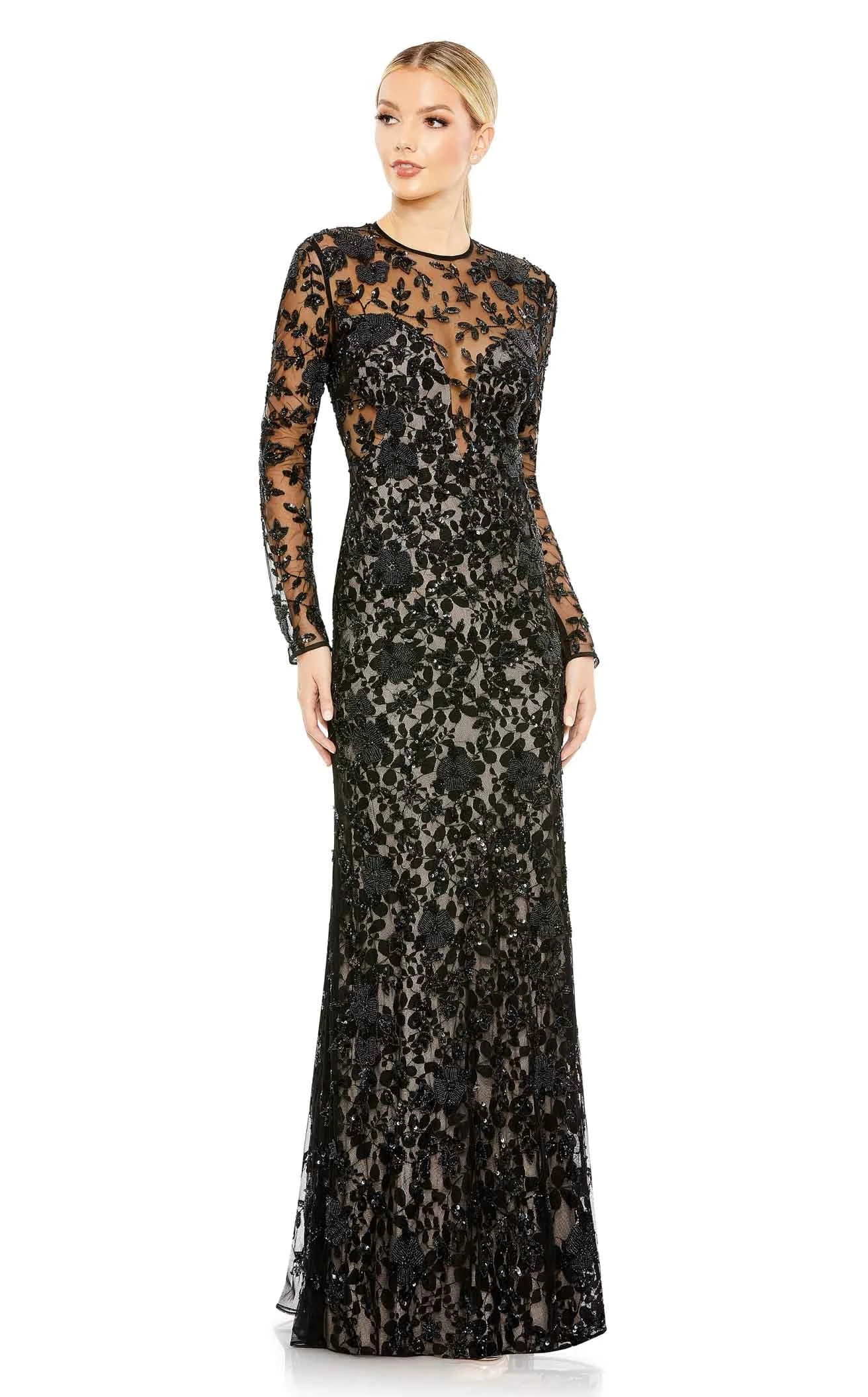 Sheer Lace Embroidered Full Sleeve Embellished Fitted Dress by Mac Duggal