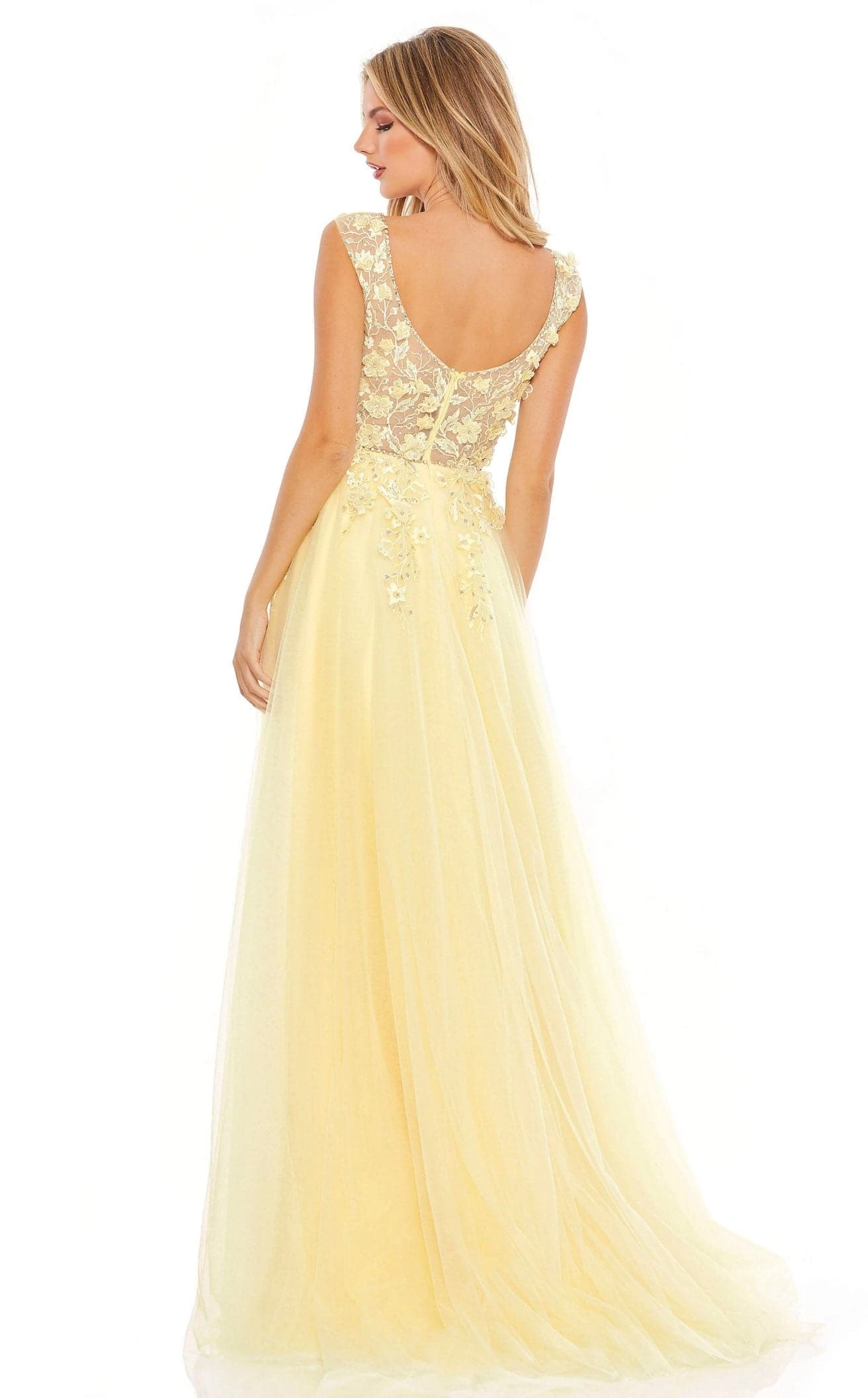 Spectacular V-neckline Floral A-line Dress With Slit From Mac Duggal