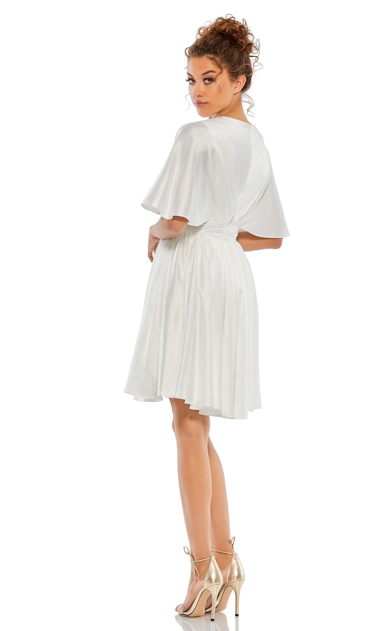 Satin Ruffle Sleeves Shrink Waistline A-line Short Dress by Mac Duggal