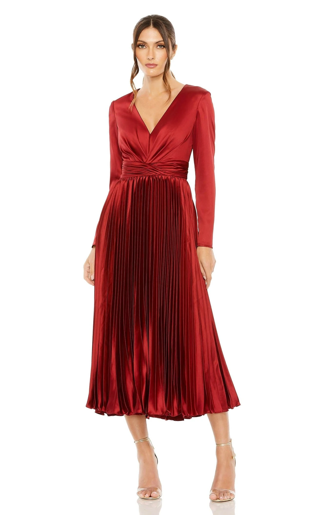 Astonishing Tea-length Full sleeves V-neckline Pleated Dress by Mac Duggal