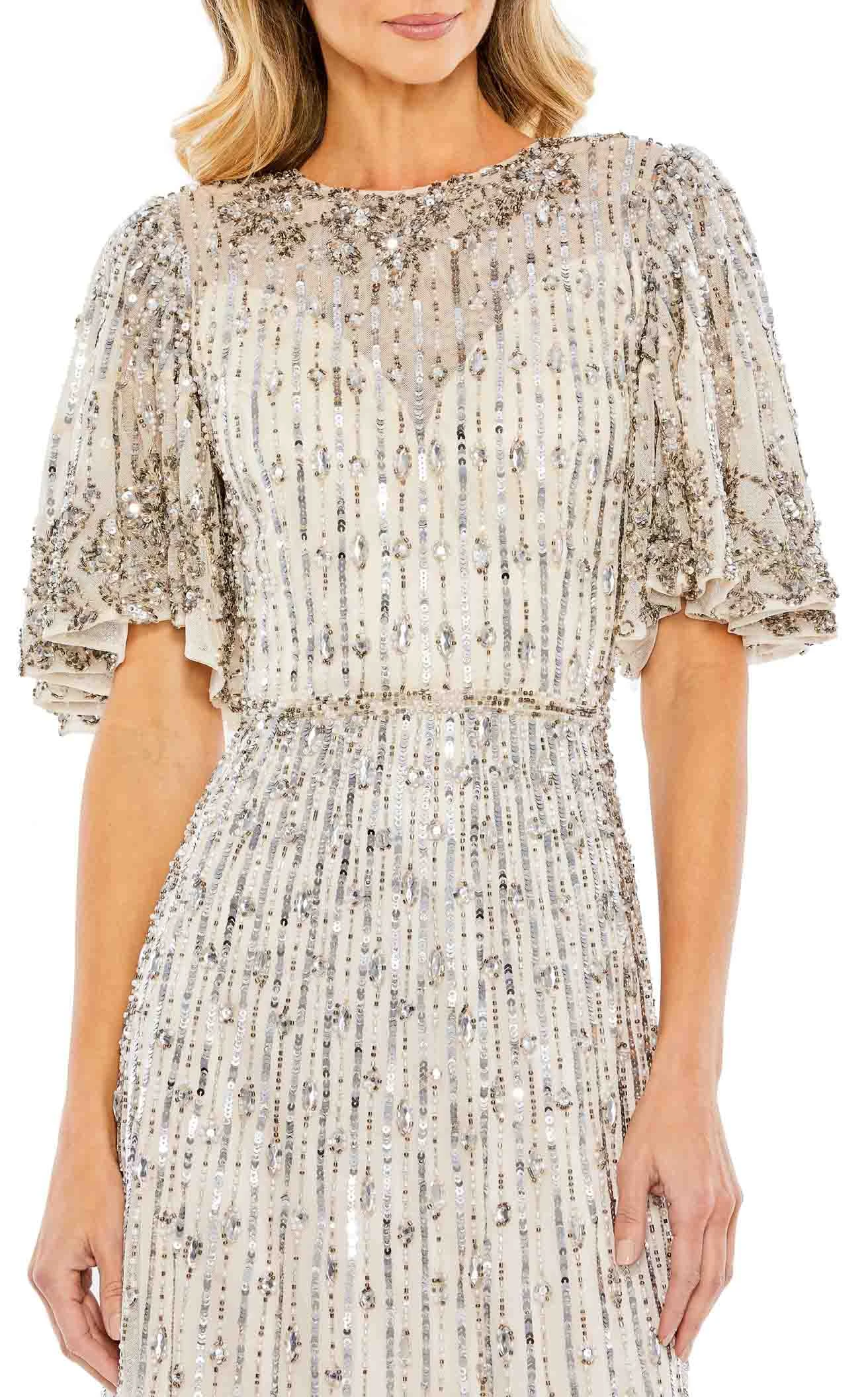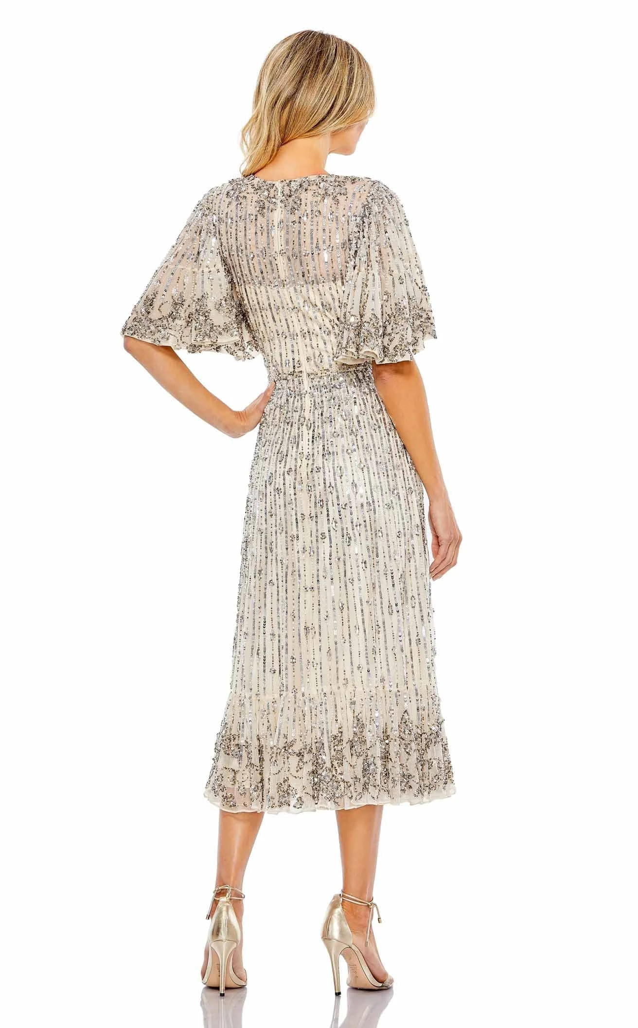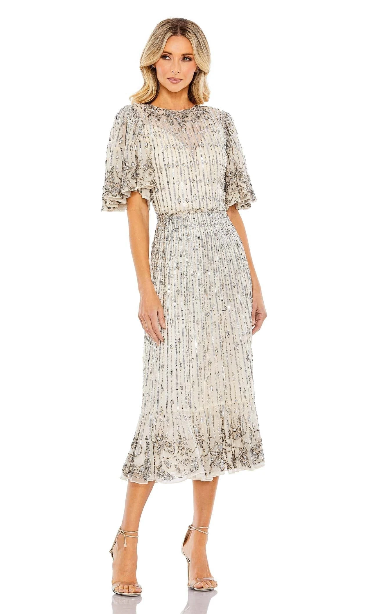 High Neckline Bell Sleeve Sequin Embellished Midi Dress by Mac Duggal