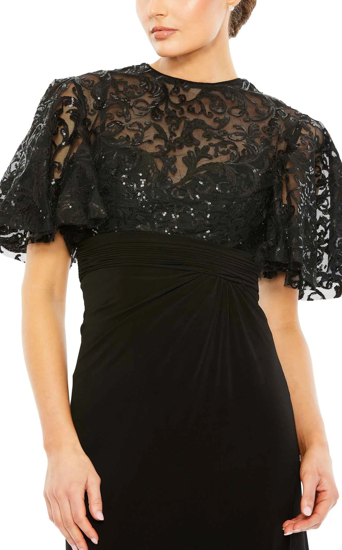 Fascinating Cape Sleeve Sheath Gown by Mac Duggal