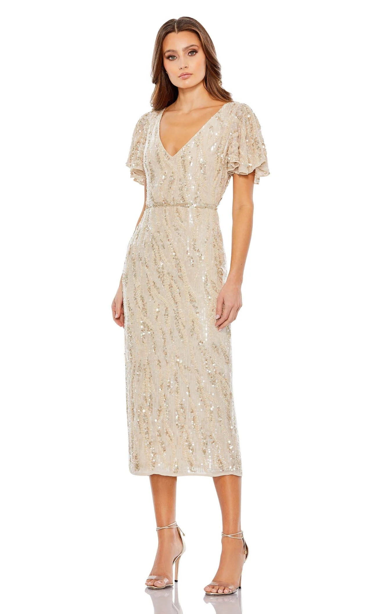 Monotone Sparkly Sequin Fully Embellished Midi Dress by Mac Duggal