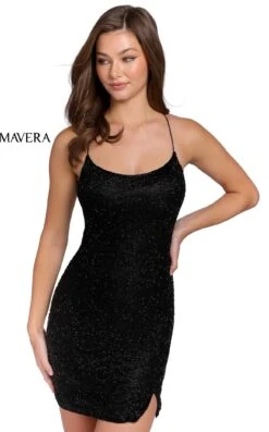 Rock the dancefloor in a fun and flirty dress by Nox Anabel T739. This dress is made of lace material with a V-neckline. The dress is trimmed with embroidery and sequins, and is fitted with a lace-up bodice that extends down to the waist. The dress also has a built-in slip and an inner lining that is also black. The hemline of the glitter tulle dress is at the knee.