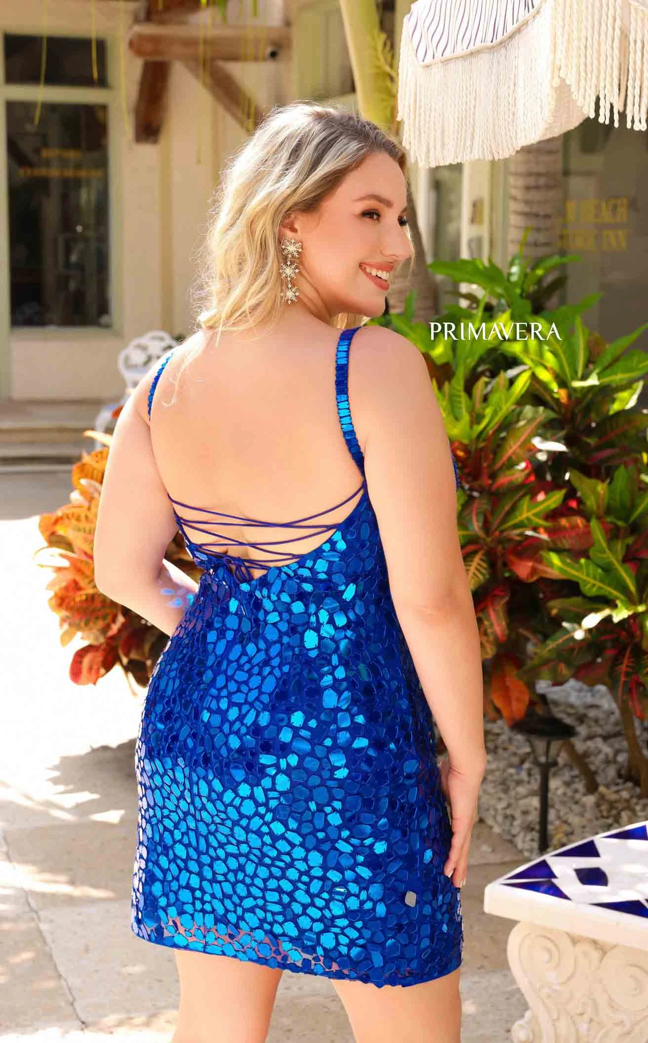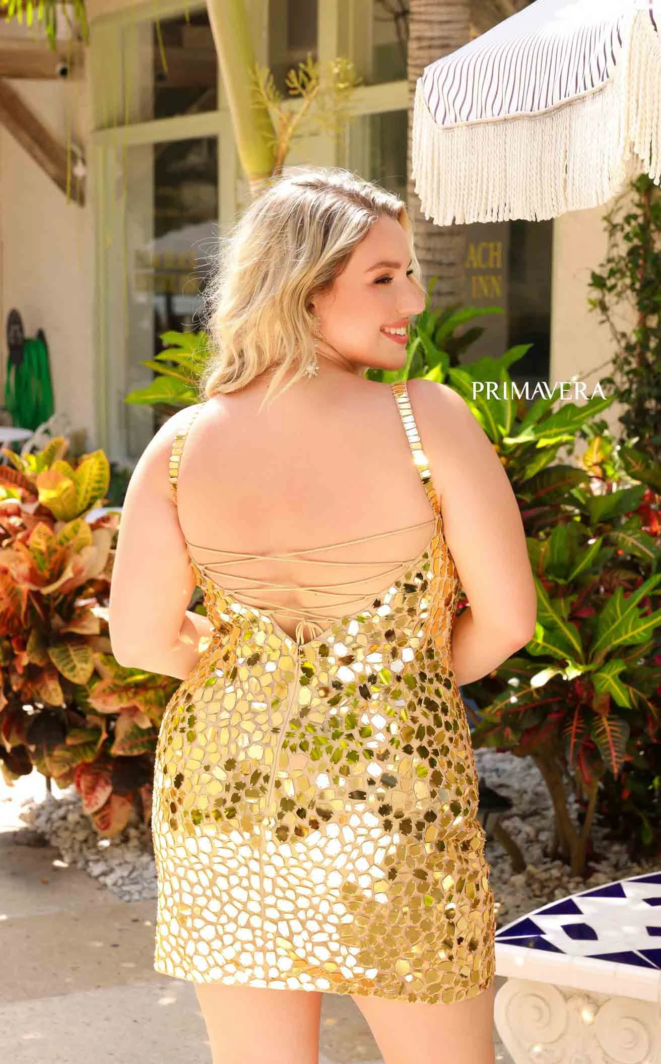Outcast your fears in this Primavera Couture 14032 dress. The dress is appliqued with cut glass beads that shine luxuriously. It is a sleeveless dress with straps that express a V-neckline. Tailored to fit your body, the dress flaunts your natural feminine curves. The mini-length silhouette makes it ideal for a night out with friends.