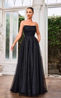 This popular style by Primavera Couture 3833 is on trend. This figure-enhancing dress has a scoop neckline and thin straps that form a corset lace up, which is useful for support and adjusting the dress to your liking. The lace up closure on the back of the dress can be loosened or tightened to adjust the fit. This dress is completely covered in sparkling sequins from head to toe.