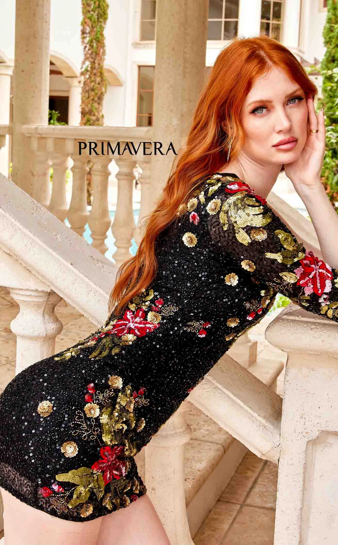 Get ready to make a lasting impression wearing this super chic and stunning Primavera Couture 4014 short dress. It is designed with an asymmetrical neckline and one long sleeve that is embellished with a beautiful floral sequin pattern. This cocktail dress has a fitted bodice and short length. The sequins and beads form a beautiful floral pattern to add a touch of sparkle and glamor.
