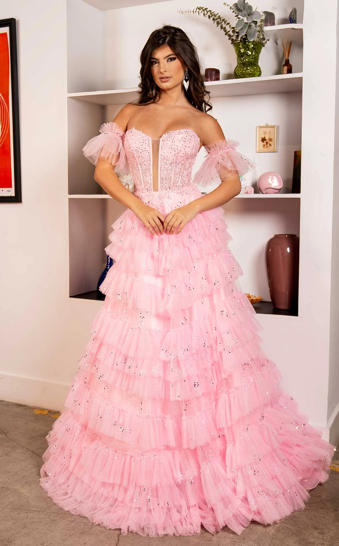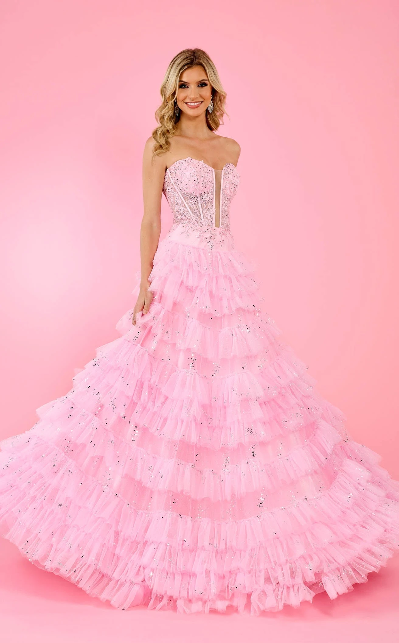 Let the crowd envy you as you walk in this ethereal 70675 Rachel Allan gown. The strapless outfit has a sweetheart neckline with a sheer insert and a mid-open back. It is festooned with beads and floral appliques, radiating elegance with every stitch. The natural waistline drops into a ballgown skirt with ruffle tiers. While adding volume to your silhouette, this Rachel Allan gown ends with a graceful sweep train and elevates your confidence.