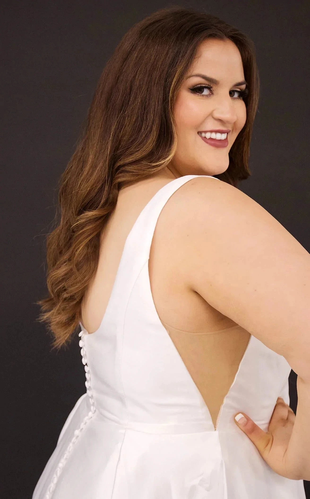 This amazing dress by Sydney’s Closet leaves a subtle remark on your elegant style. It has a square neckline with medium-sized shoulder straps that give a lean look. The side cut-outs on the fitted bodice are illusioned. This sleeveless dress has a full-length silhouette. The flowy A-line skirt ends with a thigh-high slit.