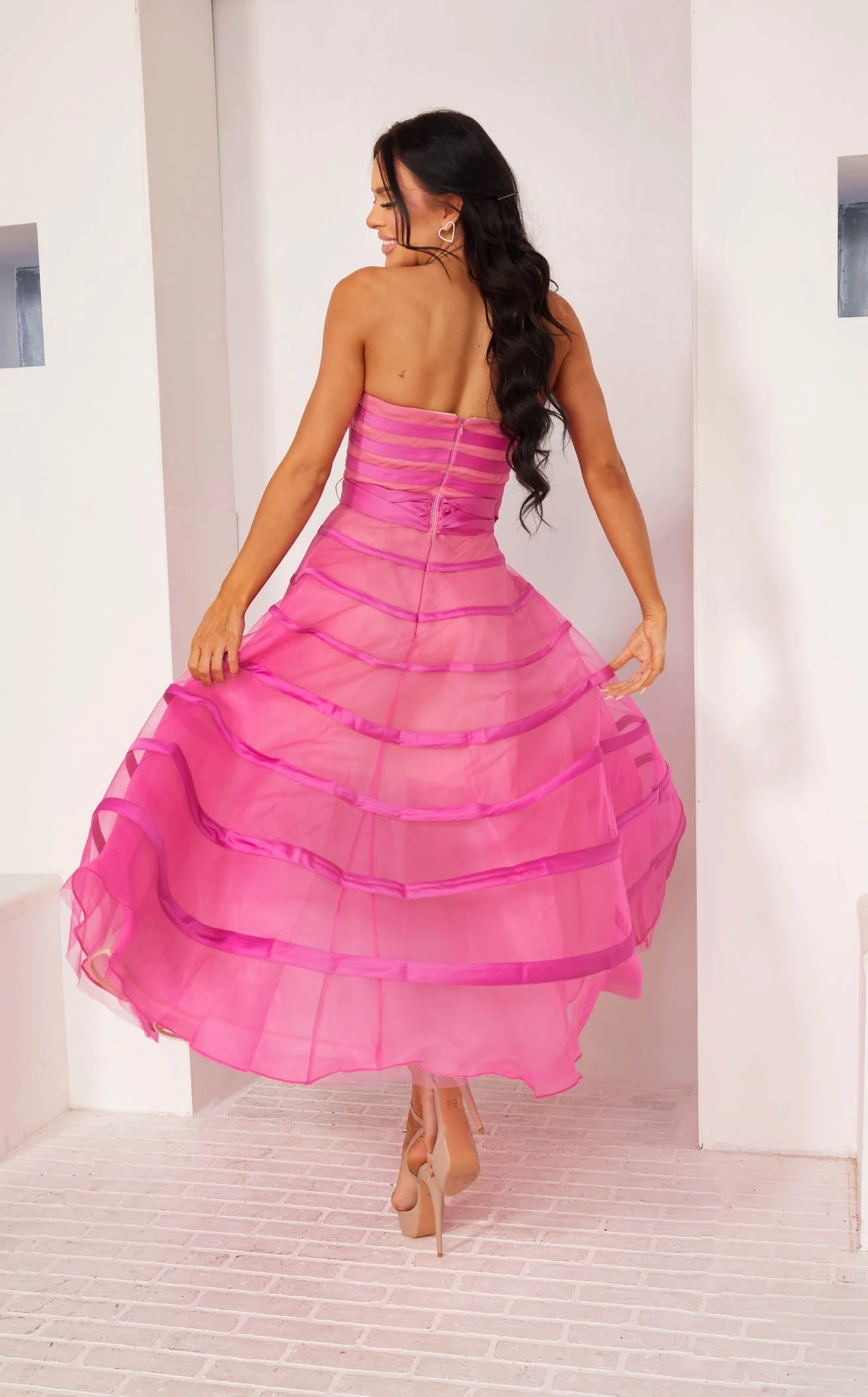 Say hello to your new go-to dress for any special occasion: the 241P2044 A-line dress by Terani. This dress is all about modern femininity and classic charm. The horizontal piping designs give it a sleek and flattering silhouette, while the adorable bow adds a hint of sweetness. Made from lightweight materials, it`s ideal for those sunny summer days when you want to look effortlessly chic. Lightweight and effortless, it`s perfect for dancing the night away without a care in the world.
